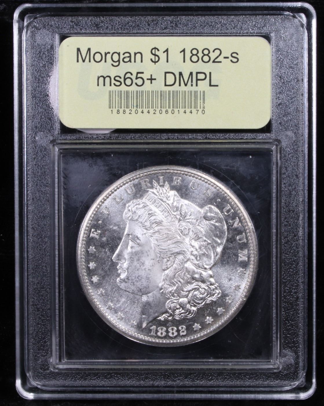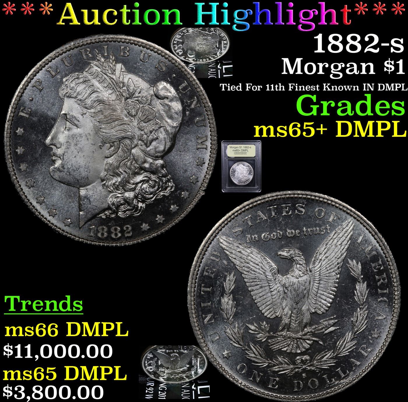 ***Auction Highlight*** 1882-s Morgan Dollar $1 Graded GEM+ DMPL BY USCG. 1882-S Morgan dollars are readily available, even in proof like finish. Deep Proof like coins are elusive, however, especially in Gem condition. This untoned MS65+ DPL displays sharply struck devices and is minimally abraded. Tied for 11th finest Known in DMPL. A Corey's Pick, Bid to Win, Don't let it get Away, you might not find its equal Coin. I give this coin my highest recommendation