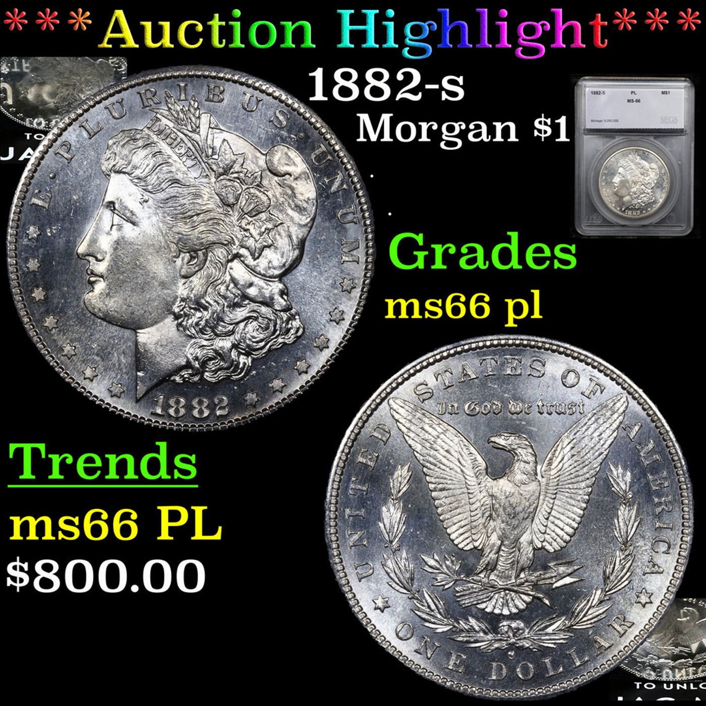 ***Auction Highlight*** 1882-s Morgan Dollar 1 Graded ms66 pl By SEGS.
