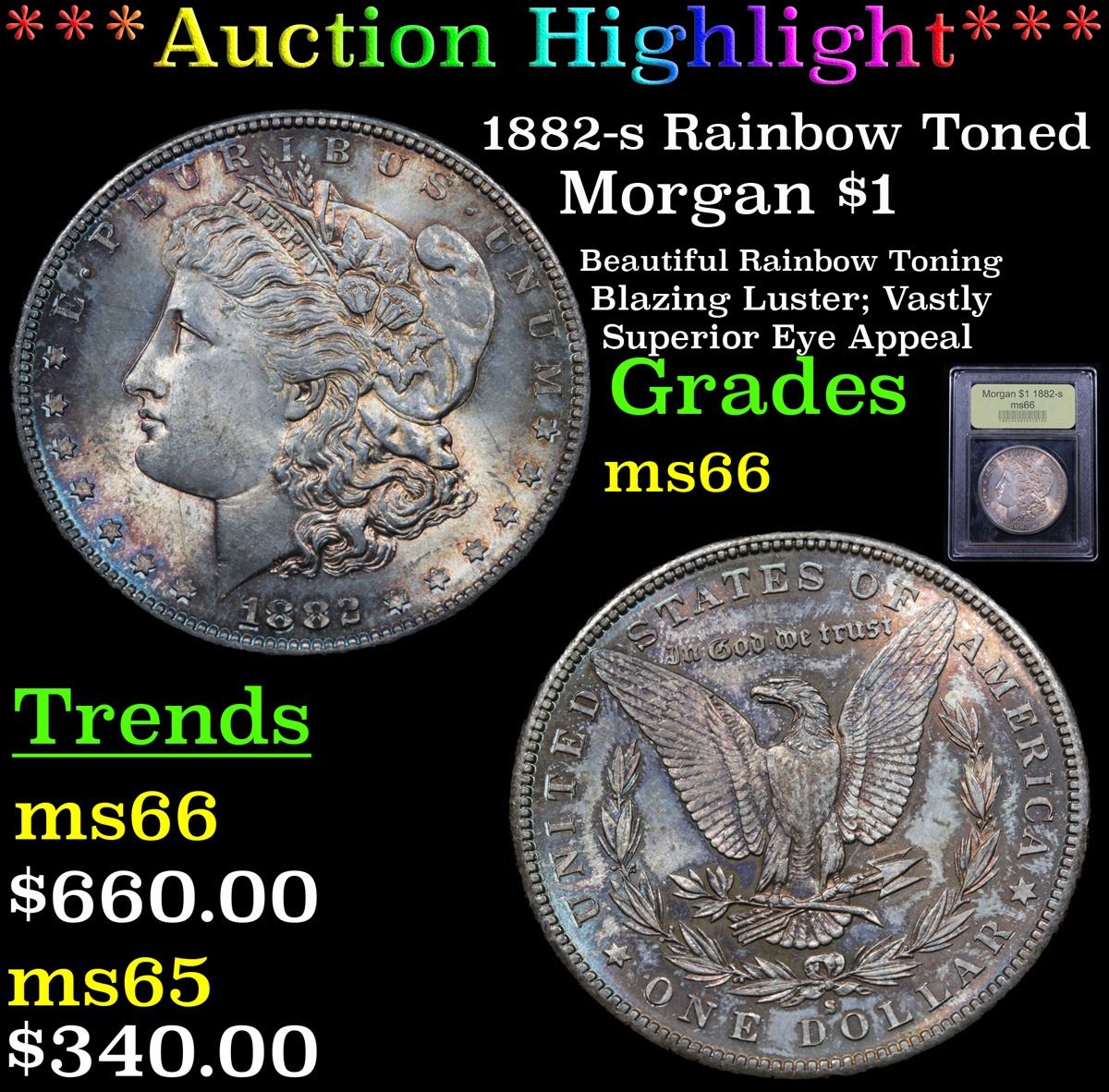 ***Auction Highlight*** 1882-s Rainbow Toned Morgan Dollar $1 Graded GEM+ Unc By USCG. A Corey's Pick, Bid to Win, Don't let it get Away Coin