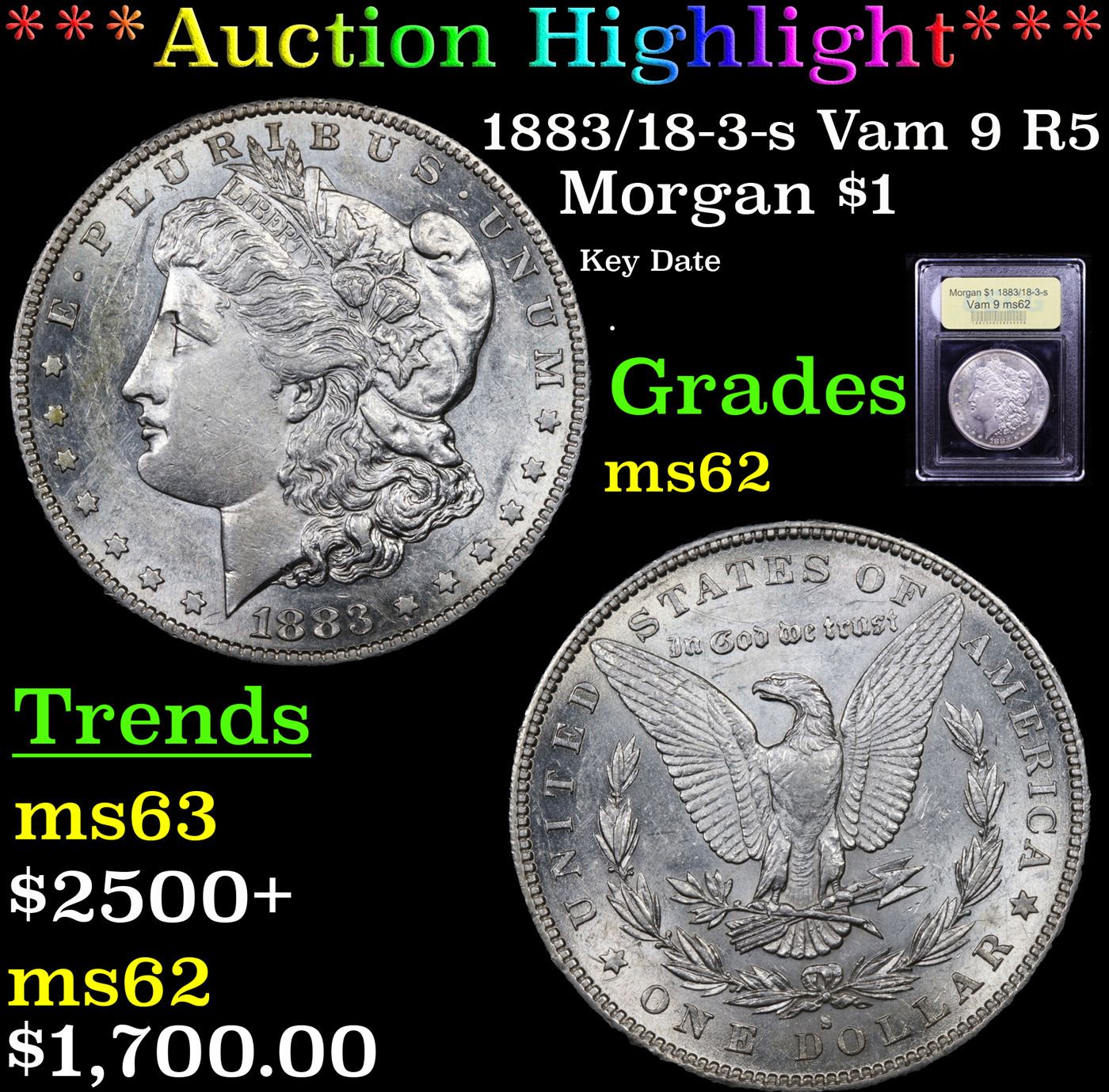 ***Auction Highlight*** 1883/18-3-s Vam 9 R5 Morgan Dollar $1 Graded Select Unc By USCG (fc)