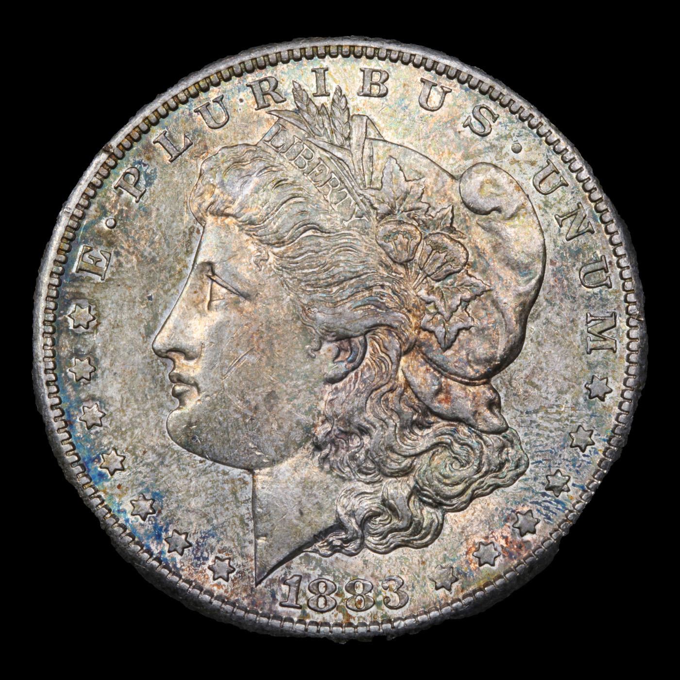 ***Auction Highlight*** 1883/18-s Rainbow Toned Vam 5 Morgan Dollar $1 Grades Select Unc PL. Up for Auction is a dynamite 1883-s, both colorfully toned and Proof Like. The 1883-s is the toughest coin to find in PL, with less than 100 known in PL! Well struck with great detail in the Breast feathers and nice hair above the ear.
