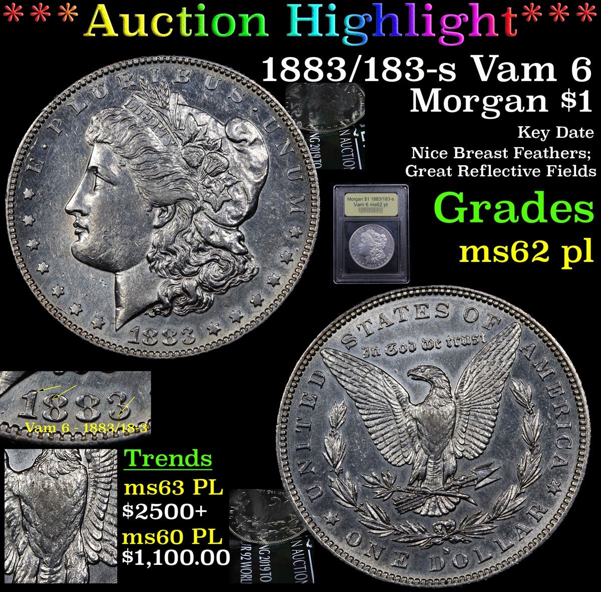 ***Auction Highlight*** 1883/183-s Vam 6 Morgan Dollar $1 Graded Select Unc PL By USCG (fc)