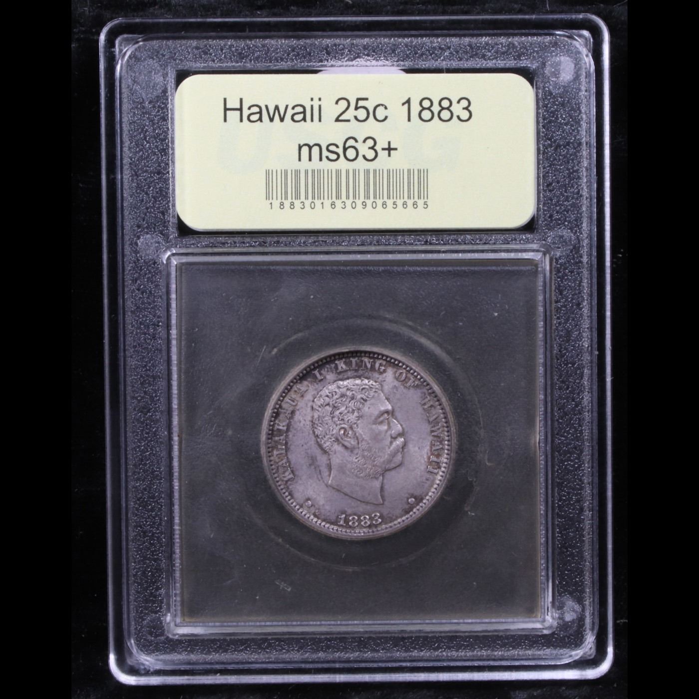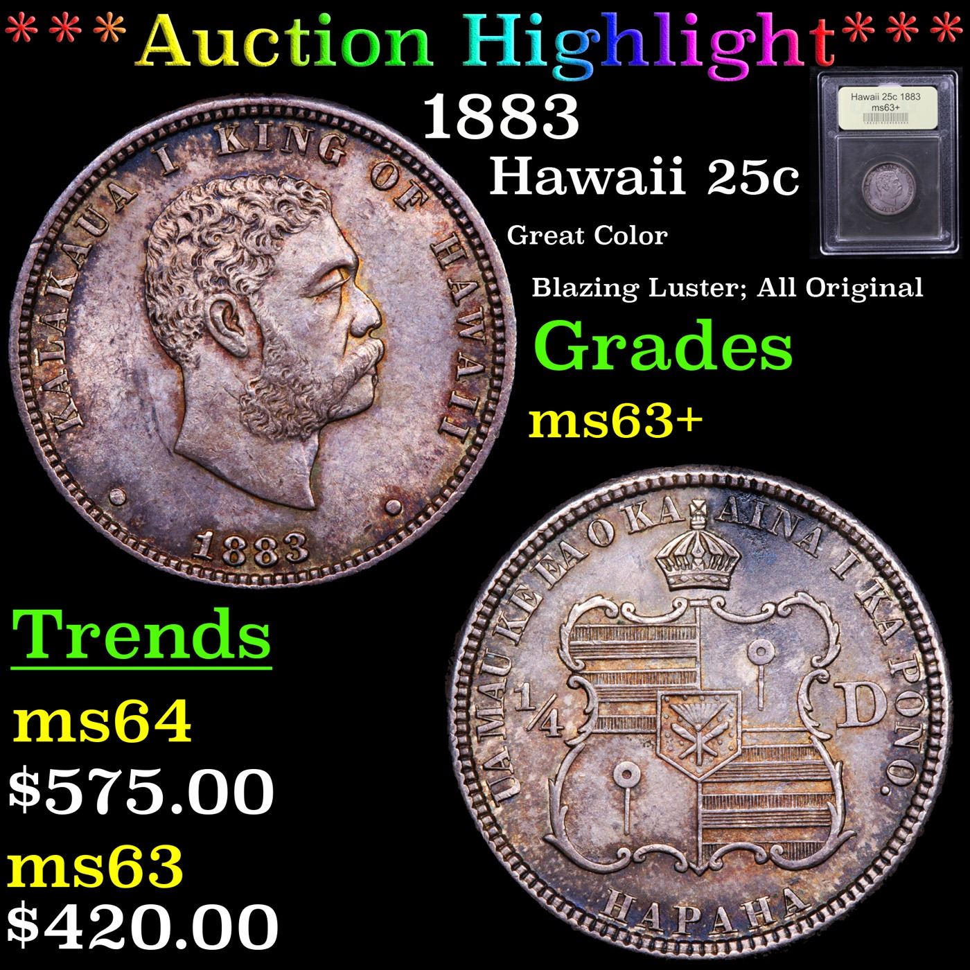 ***Auction Highlight*** 1883 Hawaii 25c Old Commem Graded Select+ Unc By USCG. The 1883 Hawaiian "Hapaha" was struck at the San Francisco Mint on U.S. Quarter planchets. Many were redeemed and melted after Hawaii acquired U.S. territorial status