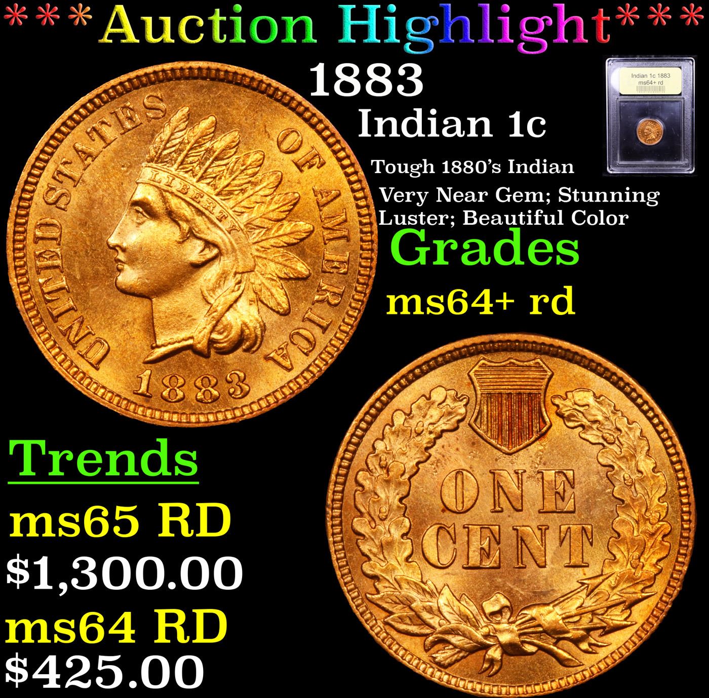 ***Auction Highlight*** 1883 Indian Cent 1c Graded Choice+ Unc RD By USCG. A Corey's Pick, Bid to Win Coin