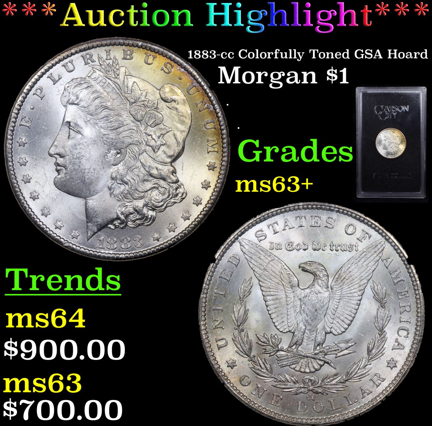 ***Auction Highlight*** 1883-cc Colorfully Toned GSA Hoard Morgan Dollar $1 Graded Select+ Unc By USCG.