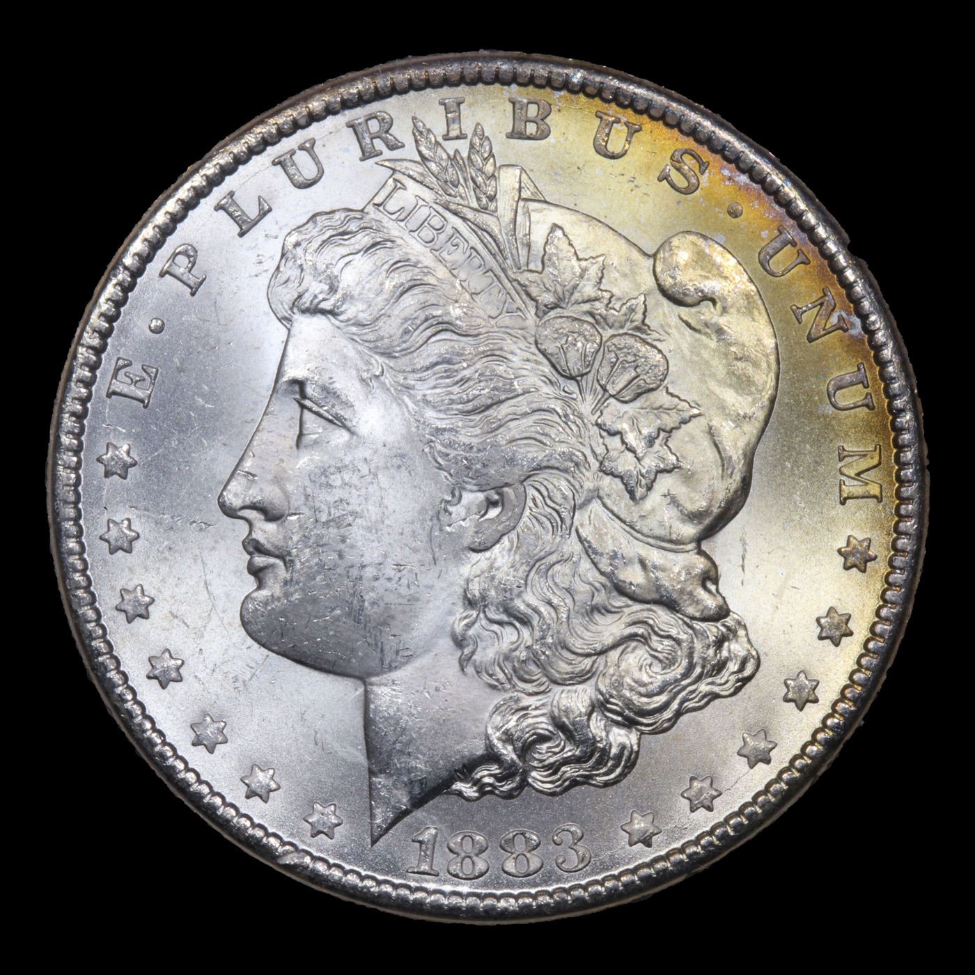 ***Auction Highlight*** 1883-cc Colorfully Toned GSA Hoard Morgan Dollar $1 Graded Select+ Unc By US