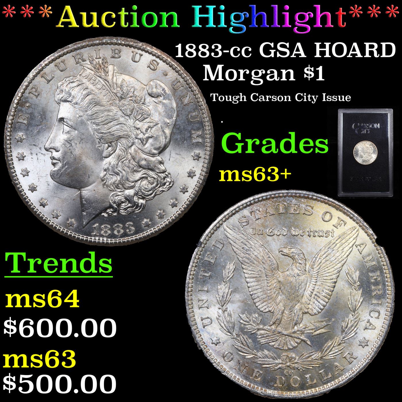 ***Auction Highlight*** 1883-cc GSA HOARD Morgan Dollar $1 Grades Select+ Unc. Come With Box & COA
