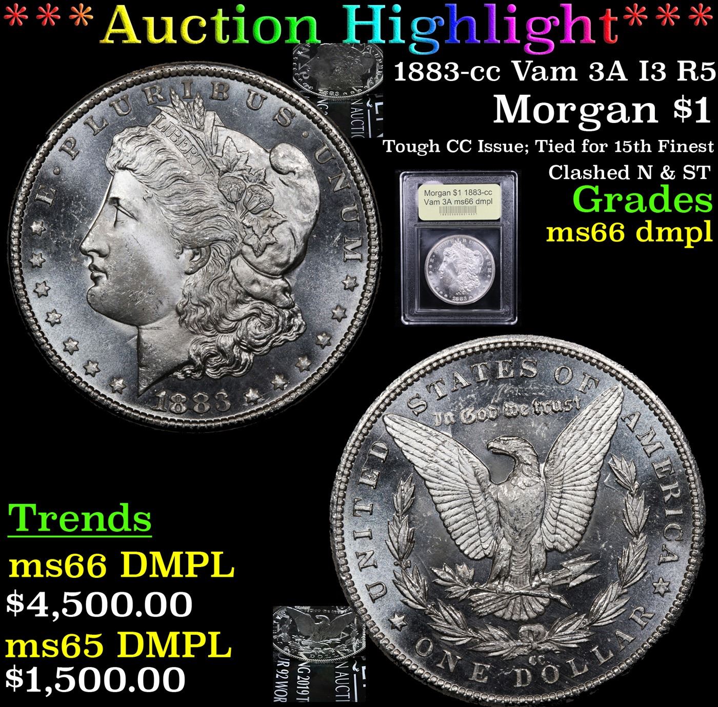 ***Auction Highlight*** 1883-cc Vam 3A I3 R5 Morgan Dollar $1 Graded GEM+ UNC DMPL By USCG (fc)