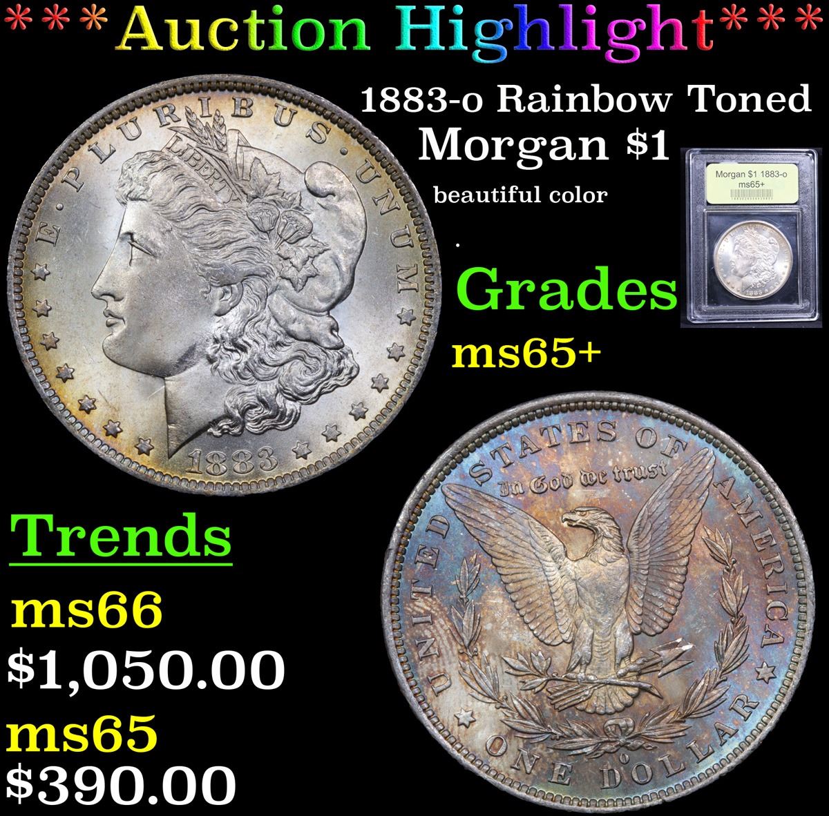 ***Auction Highlight*** 1883-o Rainbow Toned Morgan Dollar $1 Graded GEM+ Unc By USCG. A Corey's Pick, Bid to Win Coin