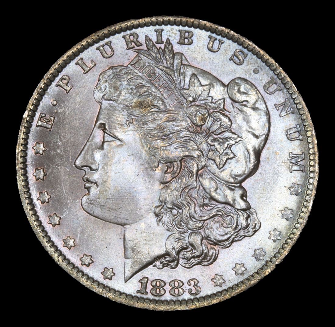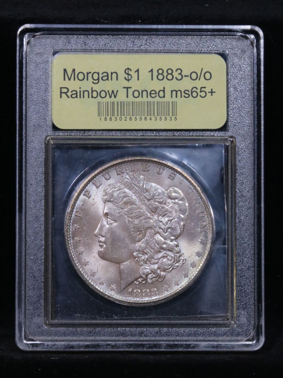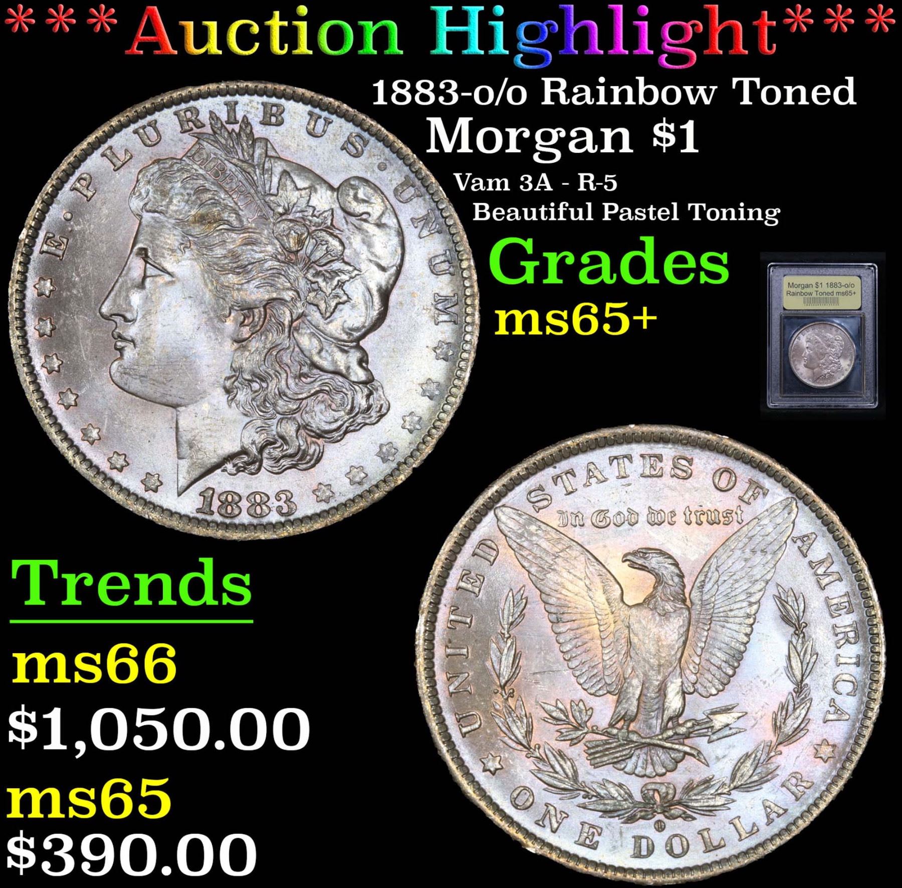 ***Auction Highlight*** 1883-o/o Rainbow Toned Morgan Dollar $1 Graded GEM+ Unc By USCG. Vam 3A - R-5; Beautiful Pastel Toning A Corey's Pick, Bid to Win, Don't let it get Away Coin