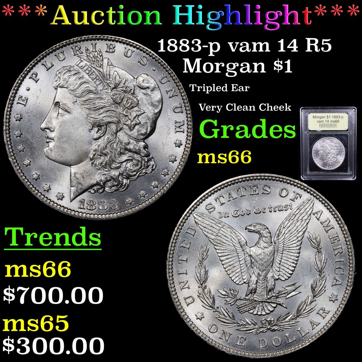 ***Auction Highlight*** 1883-p vam 14 I2 R5 Morgan Dollar $1 Graded GEM+ Unc By USCG (fc)