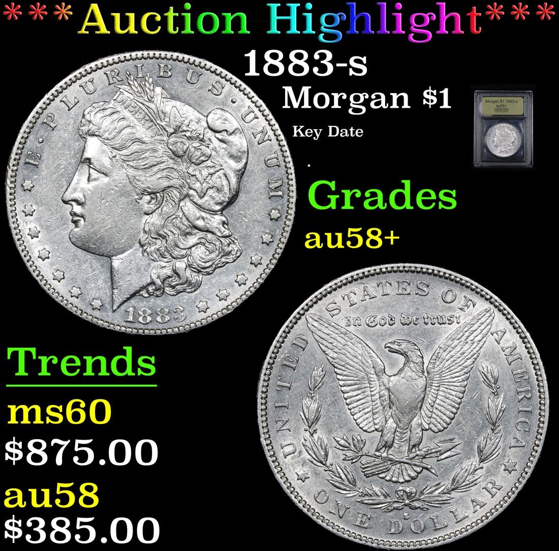 ***Auction Highlight*** 1883-s Key Date . Morgan Dollar $1 Graded Choice AU/BU Slider+ By USCG.