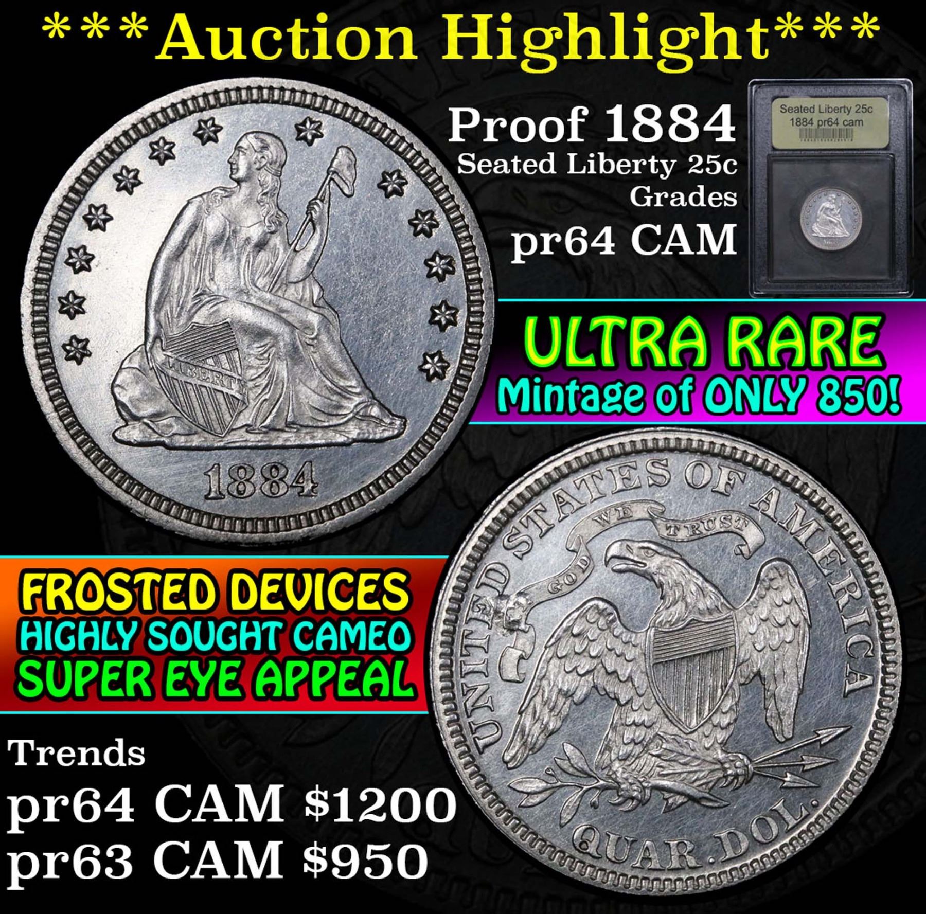 ***Auction Highlight*** 1884 Seated Liberty Quarter 25c Graded Choice Proof Cameo By USCG. A Corey's Pick