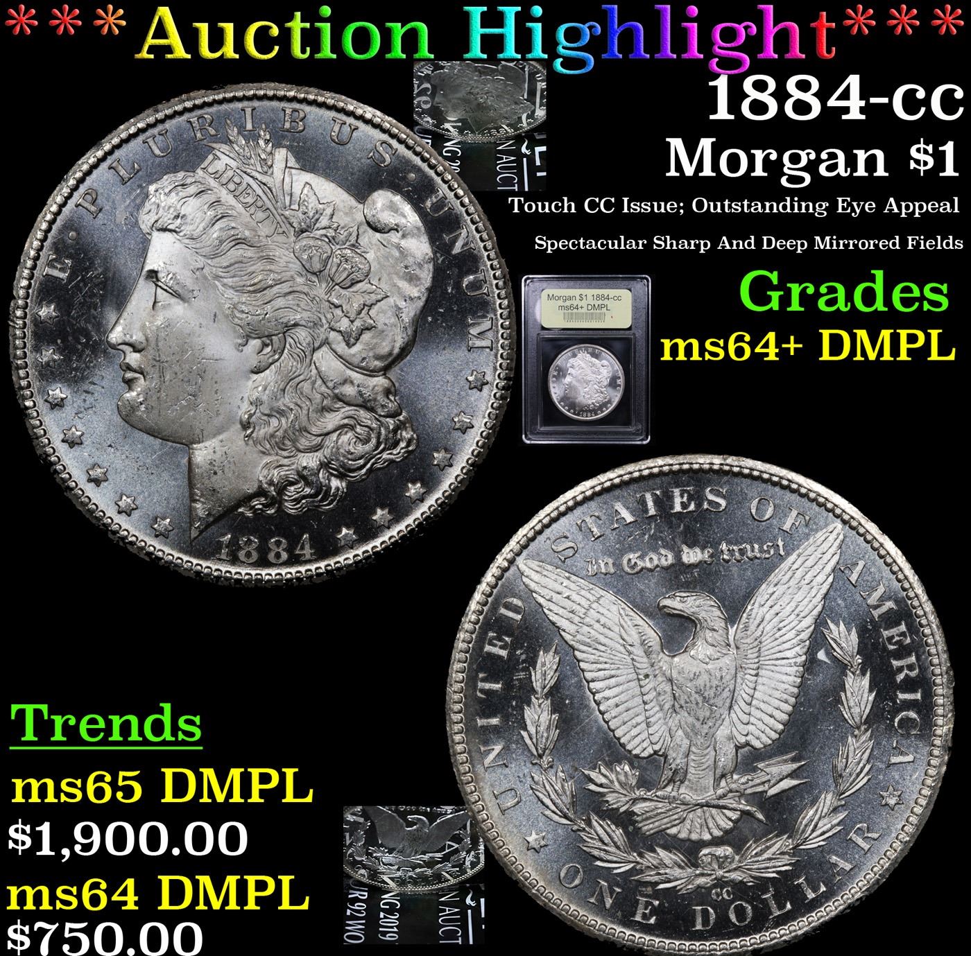 ***Auction Highlight*** 1884-cc Morgan Dollar $1 Graded Choice Unc+ DMPL By USCG. A Corey's Pick, Bid to Win Coin