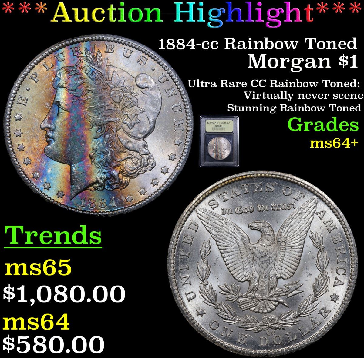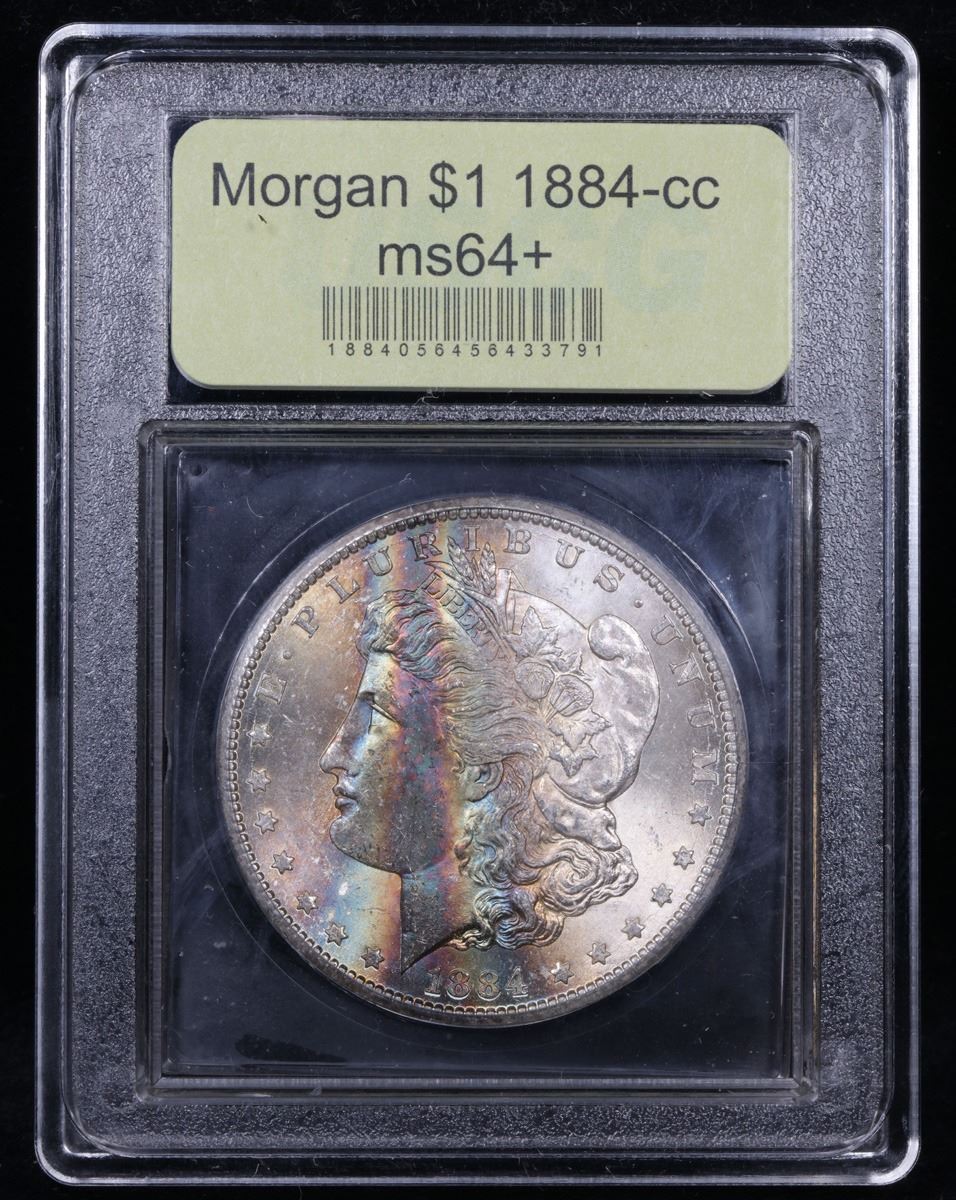 ***Auction Highlight*** 1884-cc Rainbow Toned Morgan Dollar $1 Graded Choice+ Unc By USCG. A Corey's Pick, Bid to Win, Don't let it get Away Coin