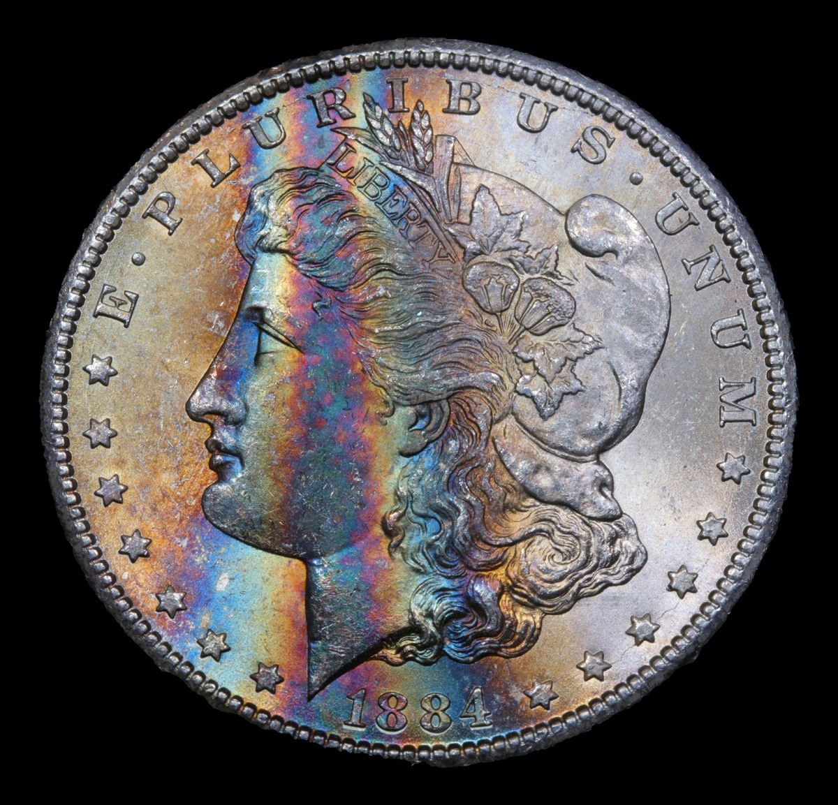 ***Auction Highlight*** 1884-cc Rainbow Toned Morgan Dollar $1 Graded Choice+ Unc By USCG (fc)
