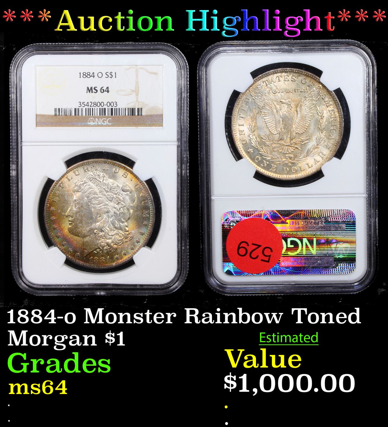 ***Auction Highlight*** 1884-o Monster Rainbow Toned Morgan Dollar $1 Graded ms64 By NGC. 0
