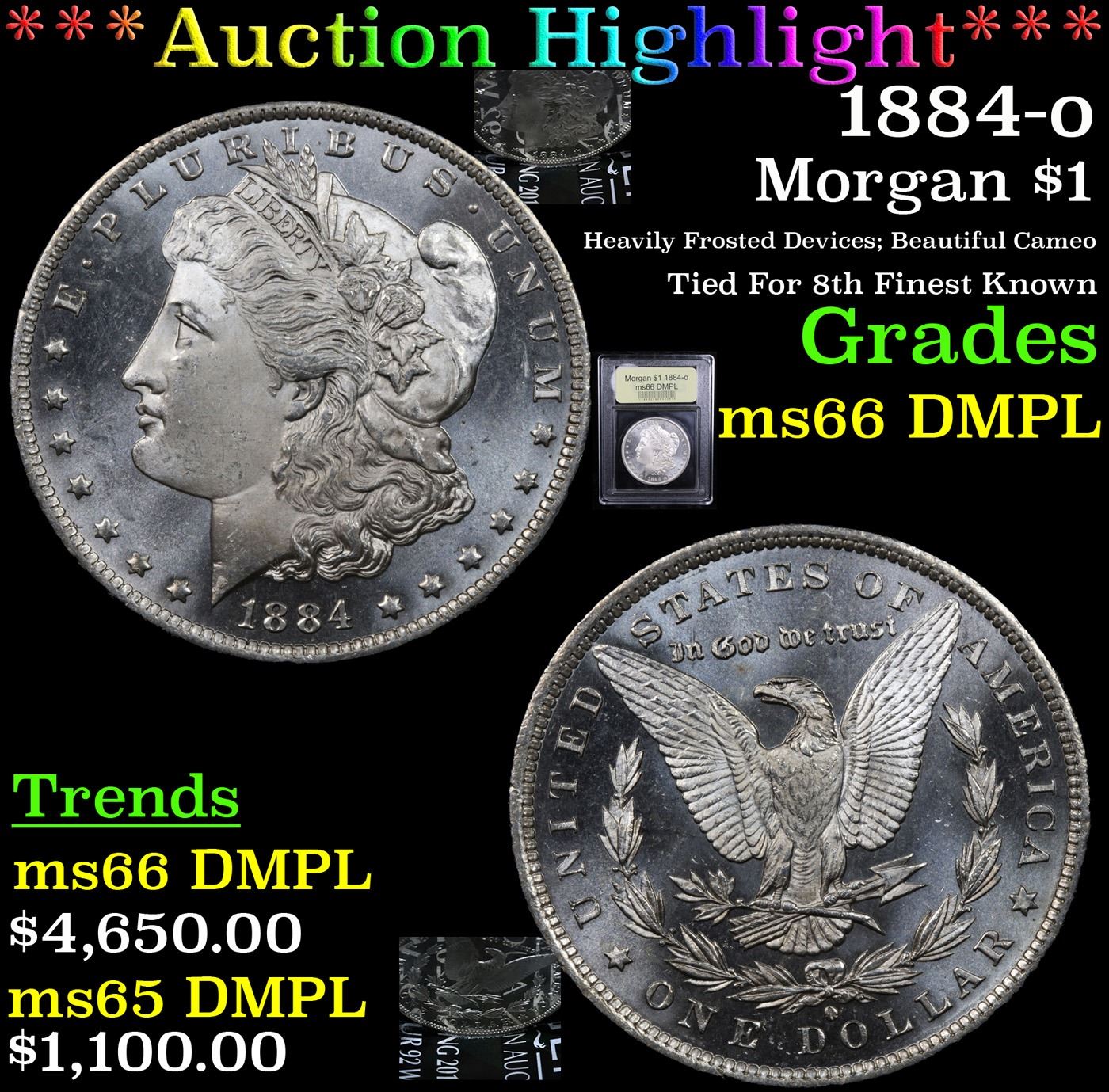 ***Auction Highlight*** 1884-o Morgan Dollar $1 Graded GEM+ UNC DMPL BY USCG. Totally brilliant, exceptionally clean surfaces showcase pronounced field reflectivity and partly frosted devices. The Deep Mirror Proof like effect is eye-catching. Sharply struck over the centers A Corey's Pick, Bid to Win, Don't let it get Away, you might not find its equal Coin. I give this coin my highest recommendation