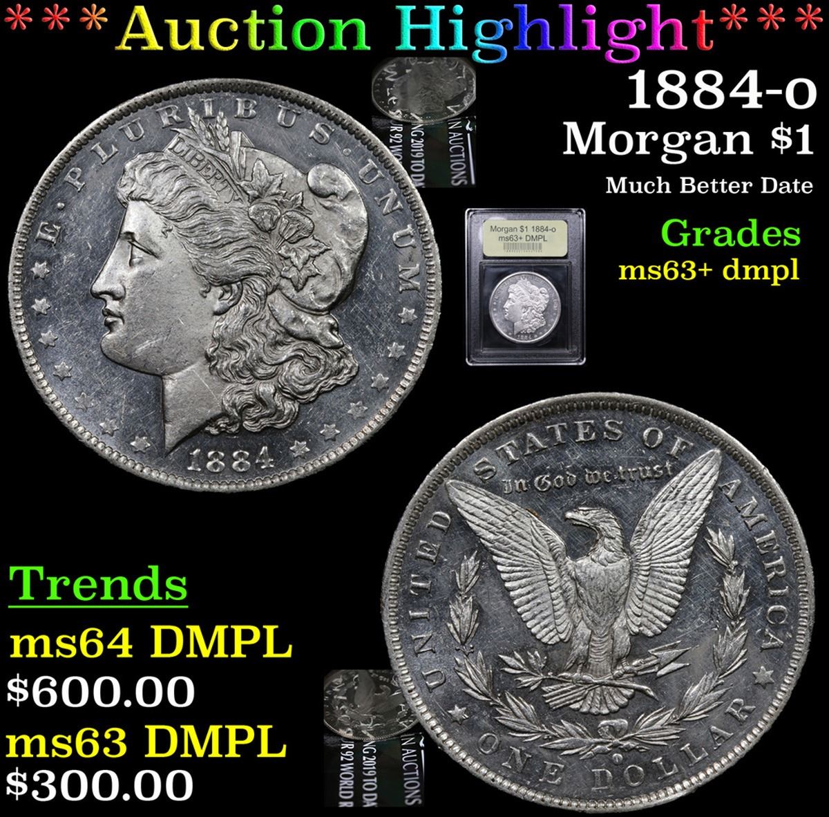 ***Auction Highlight*** 1884-o Morgan Dollar $1 Graded Select Unc+ DMPL By USCG. A Corey's Pick, Bid to Win, Don't let it get Away Coin