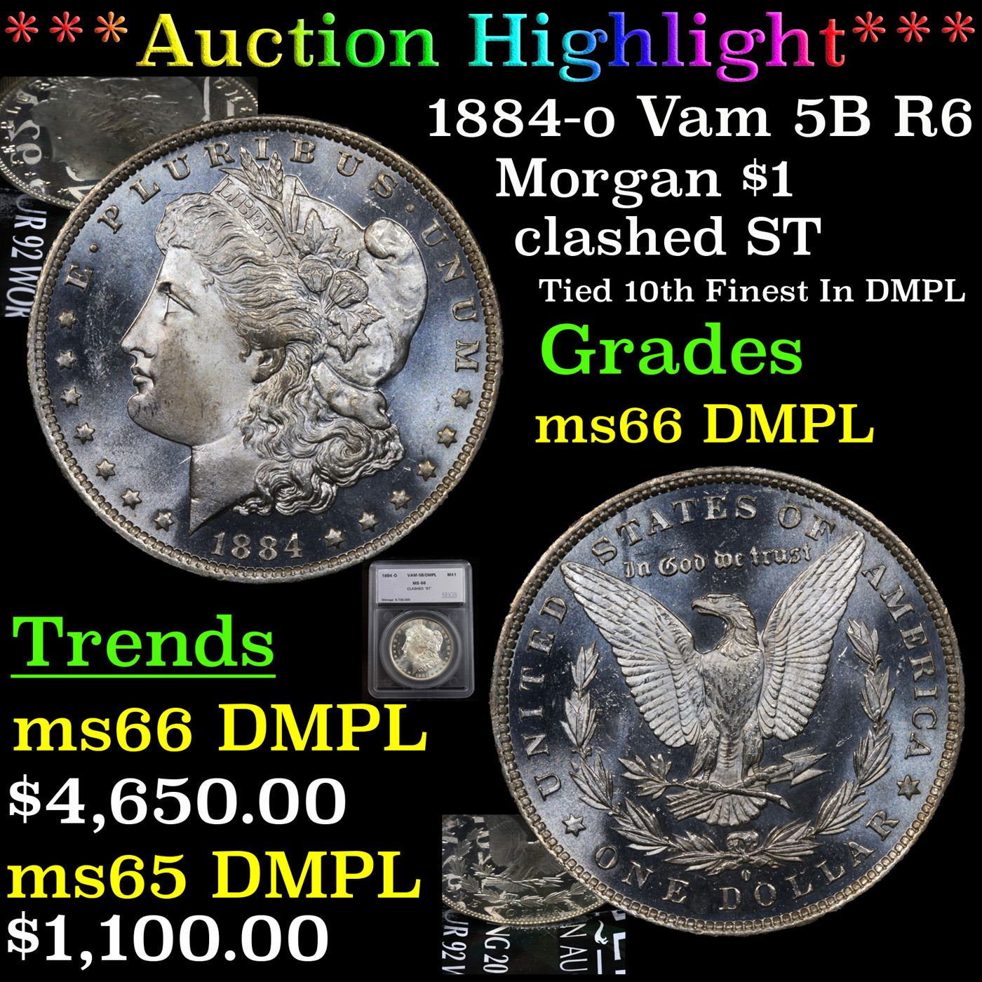 ***Auction Highlight*** 1884-o Vam 5B R6 Morgan Dollar $1 Graded ms66 DMPL By SEGS (fc)