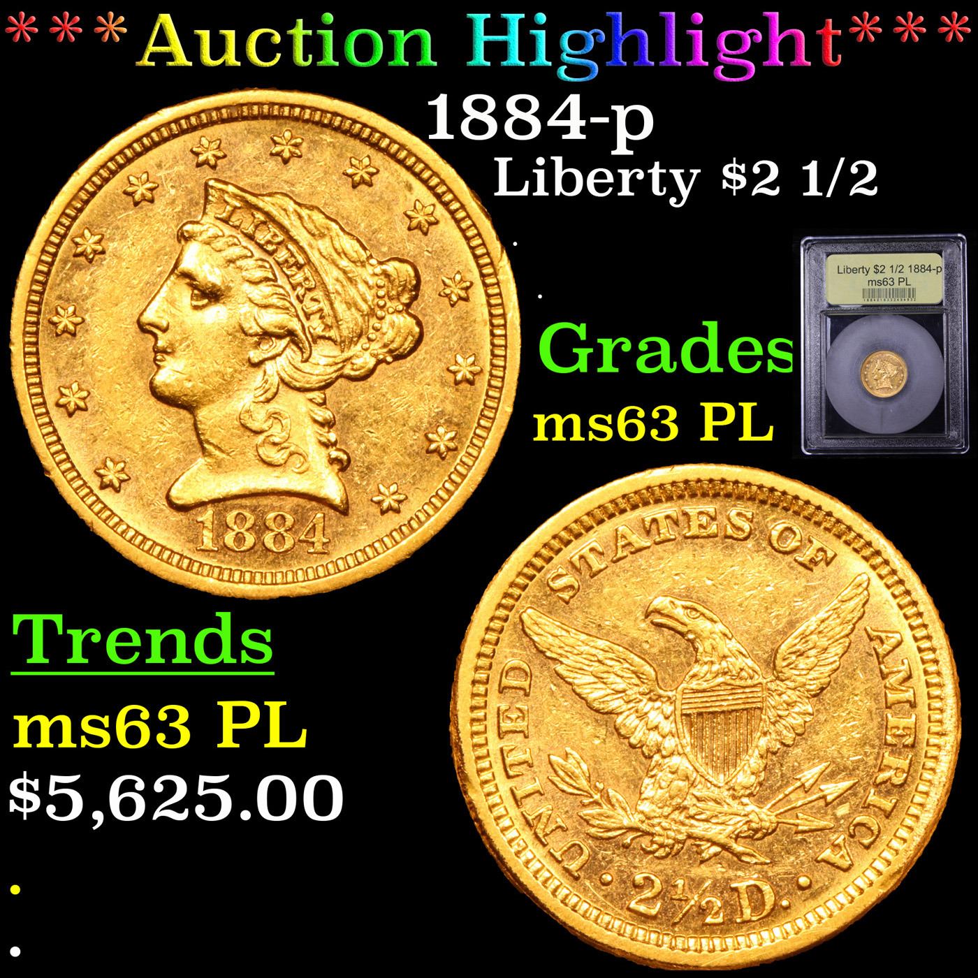 ***Auction Highlight*** 1884-p Gold Liberty Quarter Eagle $2 1/2 Graded Select Unc PL By USCG (fc)