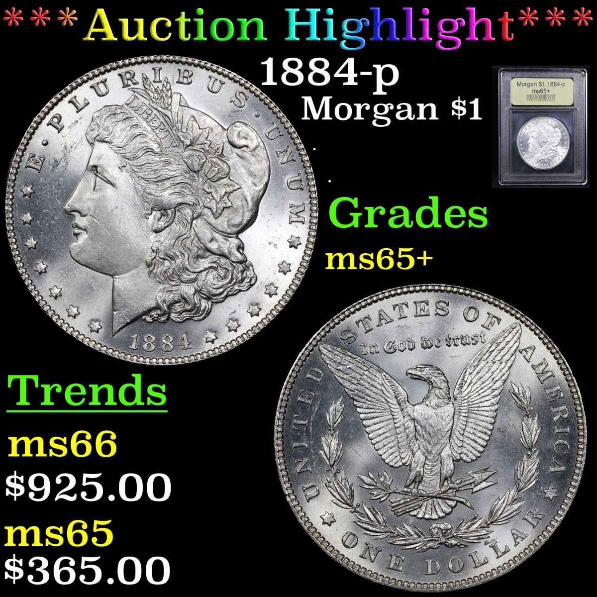 ***Auction Highlight*** 1884-p . . Morgan Dollar $1 Graded GEM+ Unc By USCG. A Corey's Pick, Bid to Win Coin