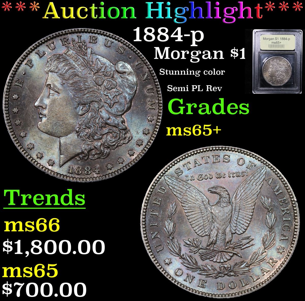 ***Auction Highlight*** 1884-p Morgan Dollar $1 Graded GEM+ Unc By USCG. A Corey's Pick, Bid to Win, Don't let it get Away Coin