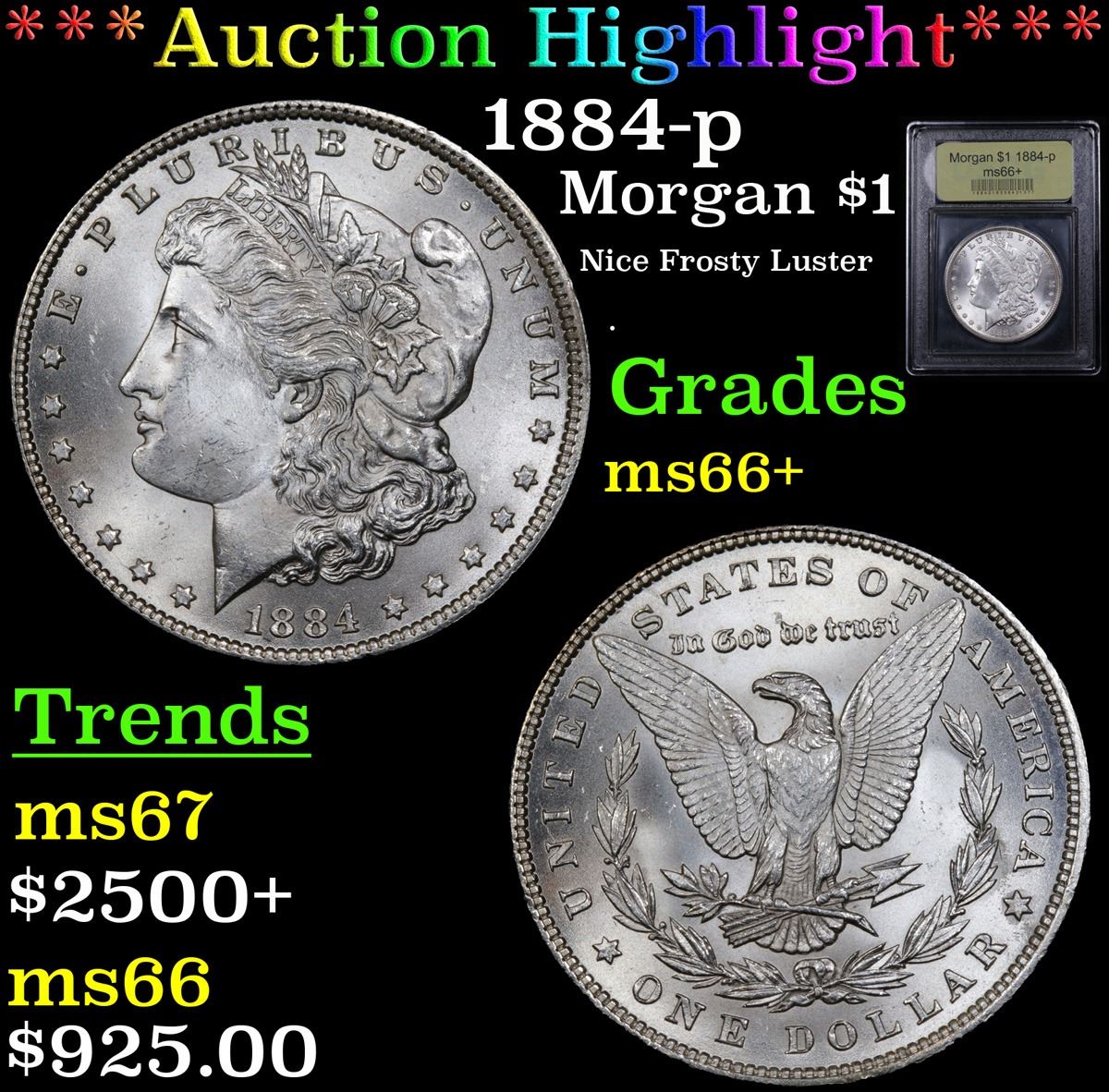 ***Auction Highlight*** 1884-p Morgan Dollar $1 Graded GEM++ Unc By USCG. A Corey's Pick, Bid to Win, Don't let it get Away Coin
