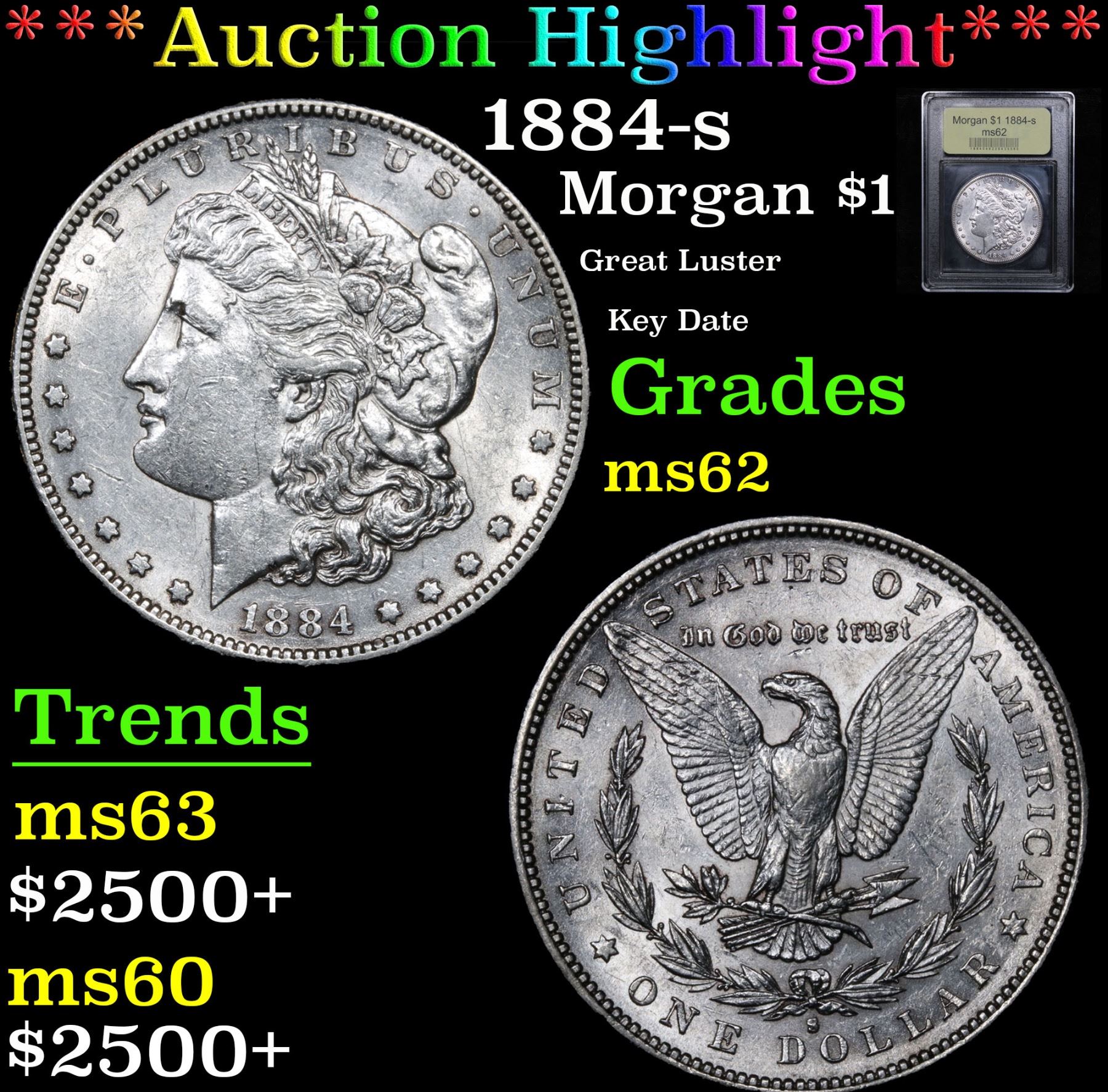 ***Auction Highlight*** 1884-s Morgan Dollar $1 Graded Select Unc By USCG. Great Luster; Key Date A Corey's Pick, Bid to Win Coin