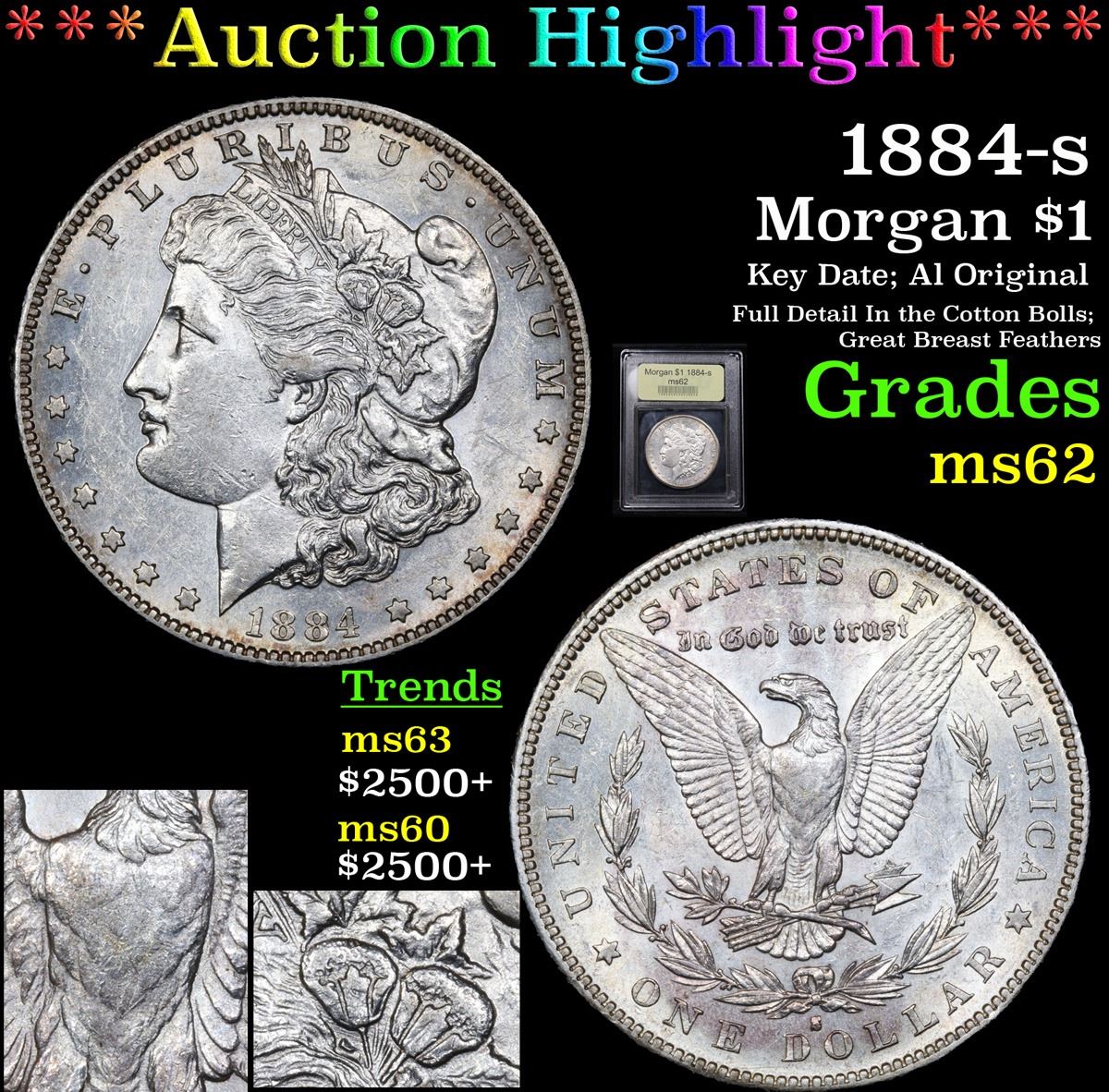 ***Auction Highlight*** 1884-s Key Date; Al Original Full Detail In the Cotton Bolls; Great Breast Feathers Morgan Dollar $1 Graded Select Unc By USCG. A Corey's Pick, Bid to Win, Don't let it get Away, you might not find its equal Coin