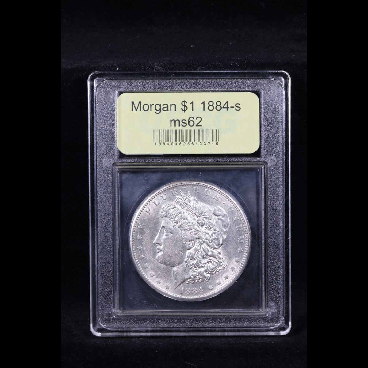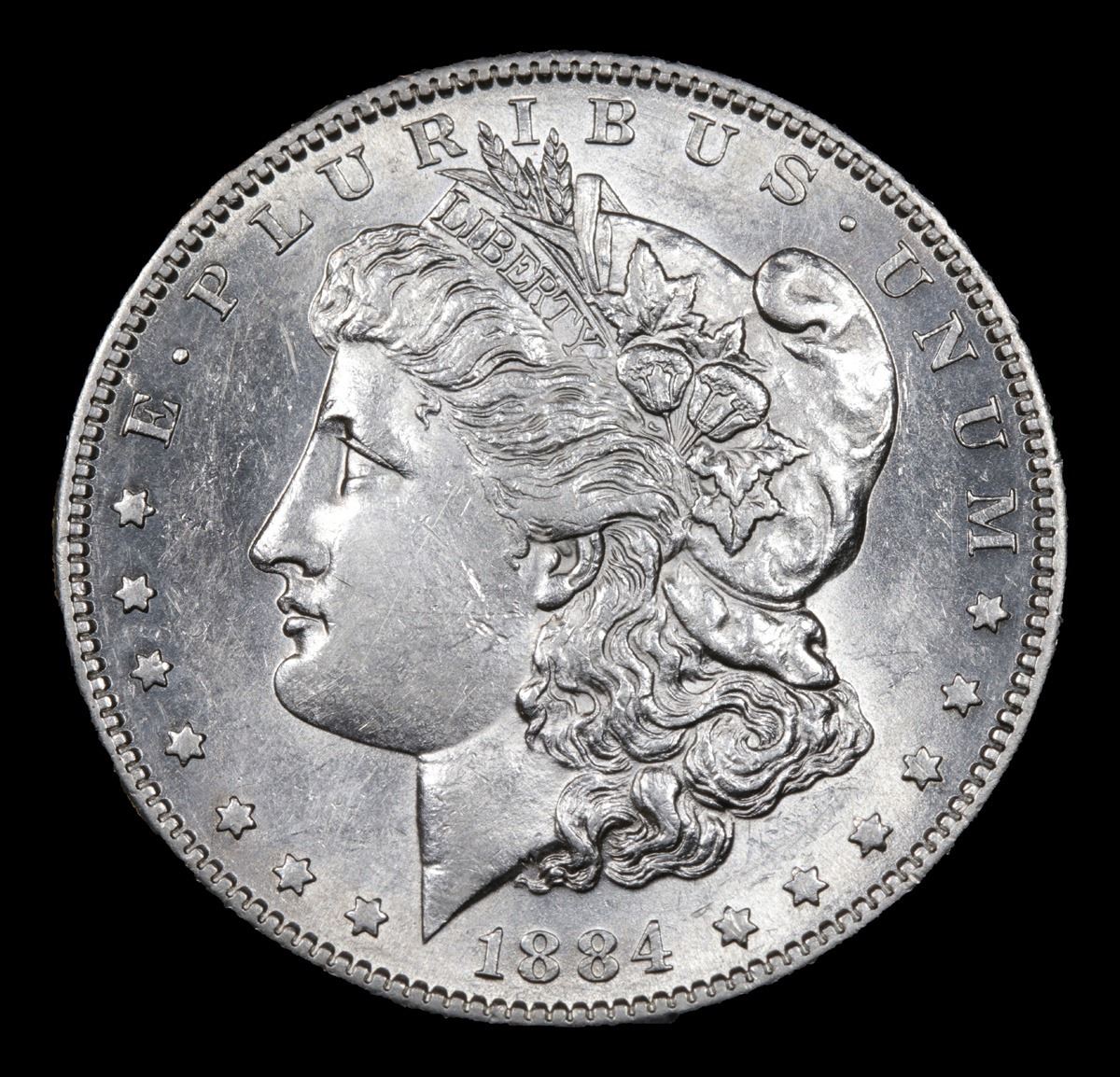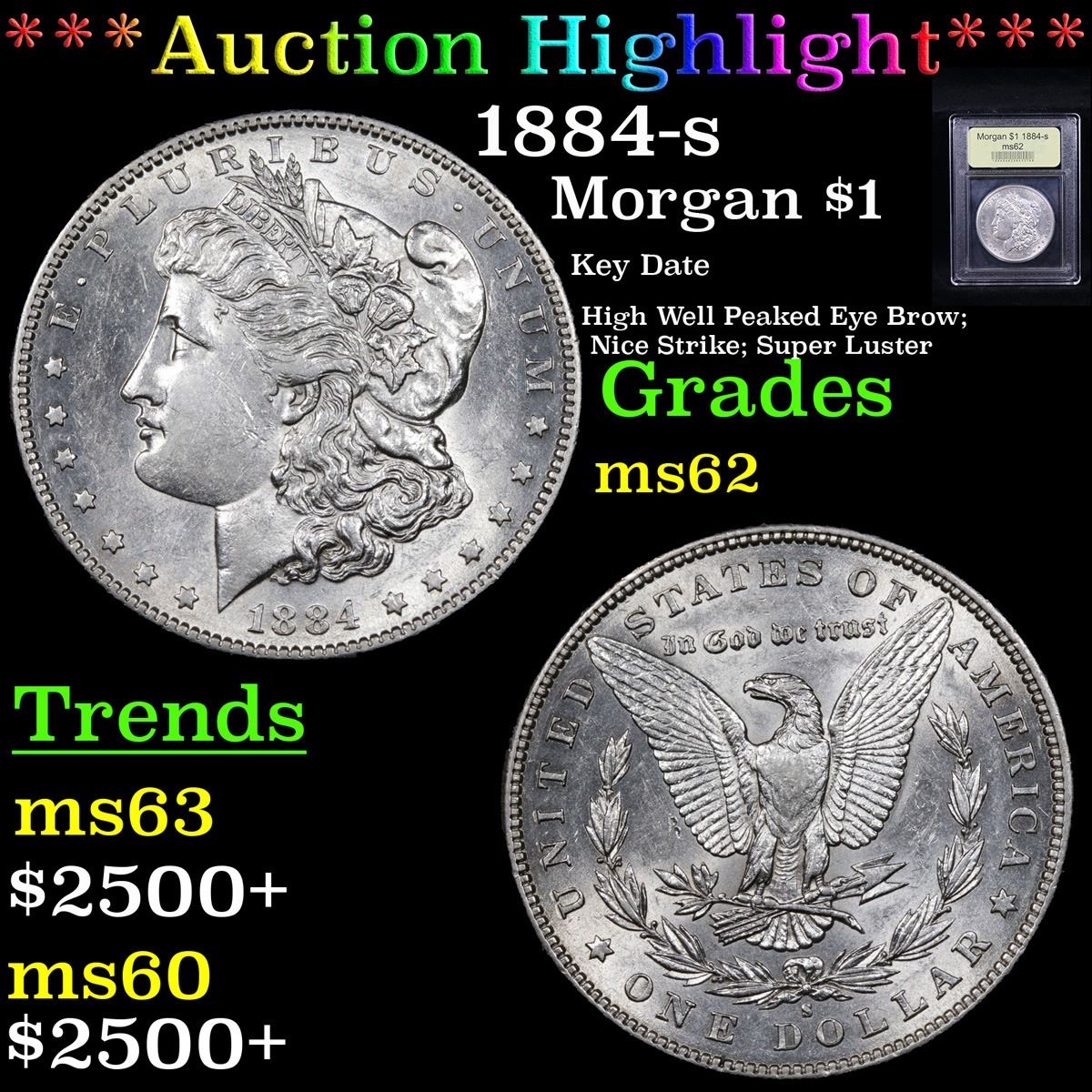***Auction Highlight*** 1884-s Key Date High Well Peaked Eye Brow; Nice Strike; Super Luster Morgan Dollar $1 Graded Select Unc By USCG. 0