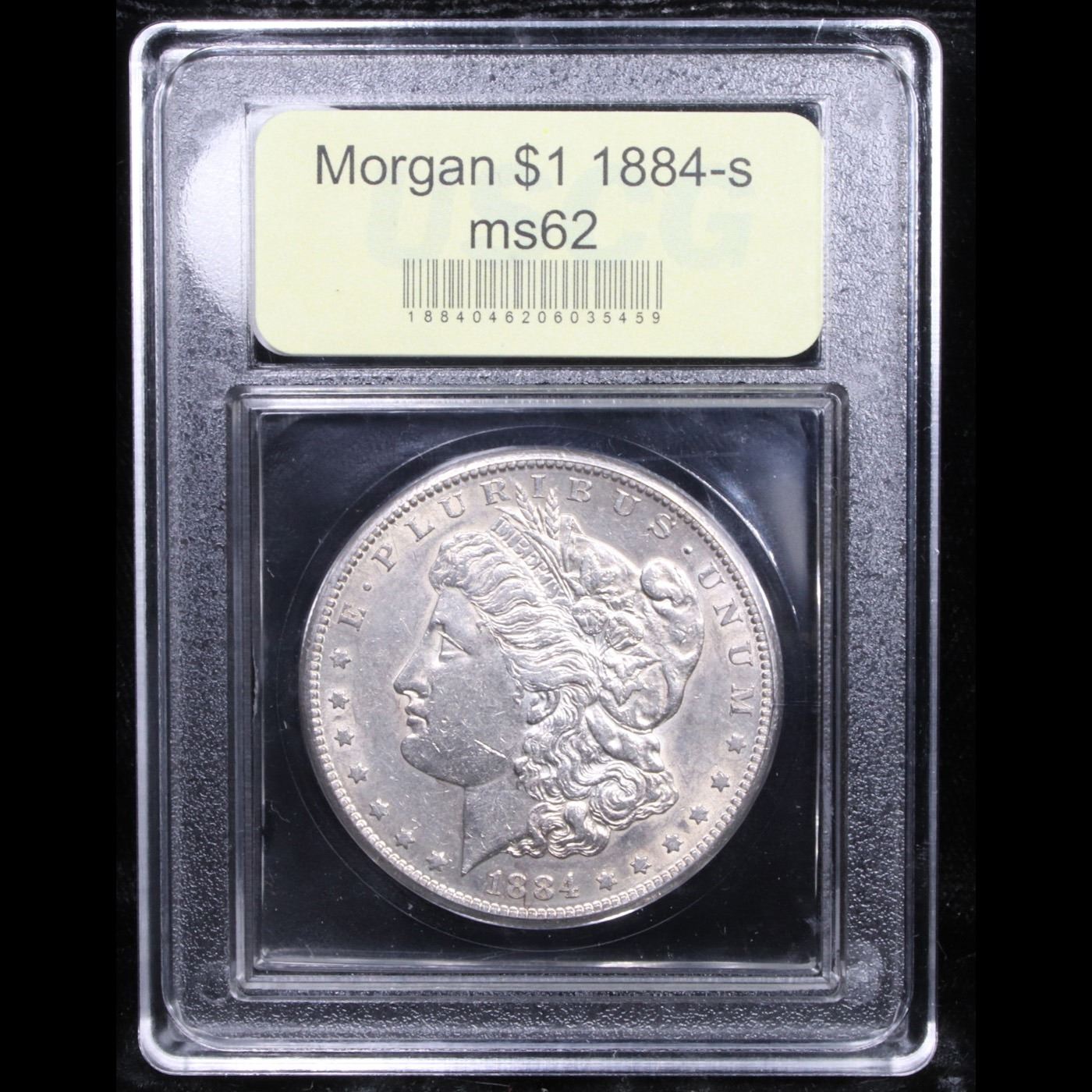***Auction Highlight*** 1884-s Morgan Dollar $1 Graded Select Unc By USCG. This is an attractive and desirable Uncirculated specimen of an eagerly sought Morgan dollar. Faint bronze iridescence accents the obverse, complementing the overall brilliant and pearly complexion at the center. It is boldly to sharply struck throughout with a very attractive appearance for the assigned grade. The 1884-S is one of the most famous condition rarities in the Morgan dollar series. Though 3.2 million pieces were struck -- a generous total for the type -- the vast majority were spent and spent again in local commerce, and today the typical grade may be EF or AU, with many survivors well below those grades. The scarcity and value of this issue increases exponentially in Mint State, where it becomes a significant challenge for advanced Morgan specialists. Clearly the present offering represents an important opportunity in today's market. A Corey's Pick, Bid to Win, Don't let it get Away, you might not find its equal Coin. I give this coin my highest recommendation