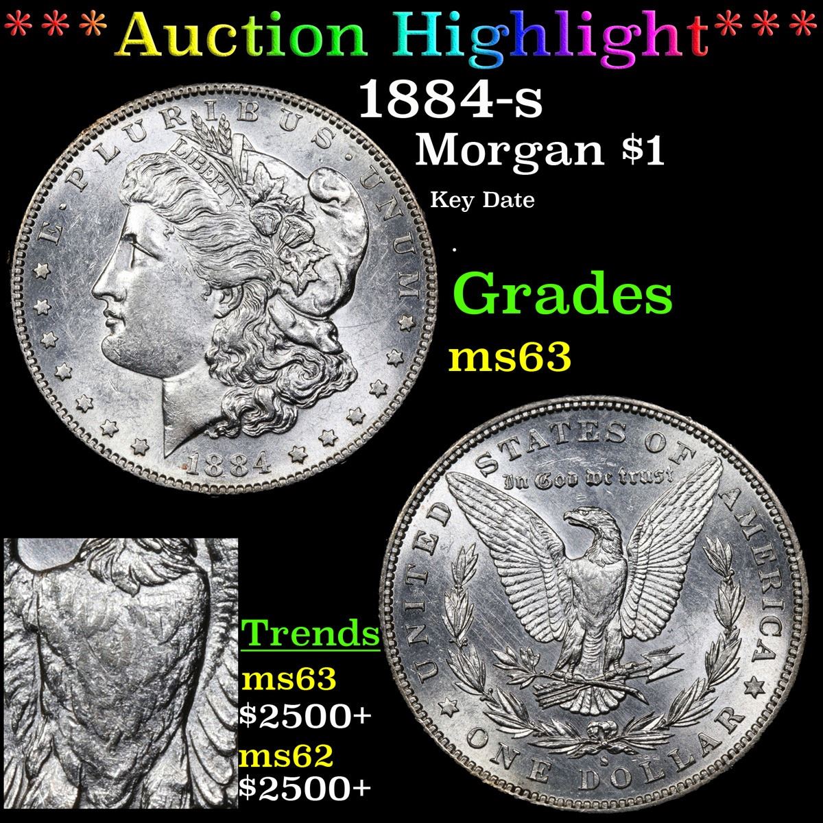 ***Auction Highlight*** 1884-s Key Date . Morgan Dollar $1 Grades Select Unc.