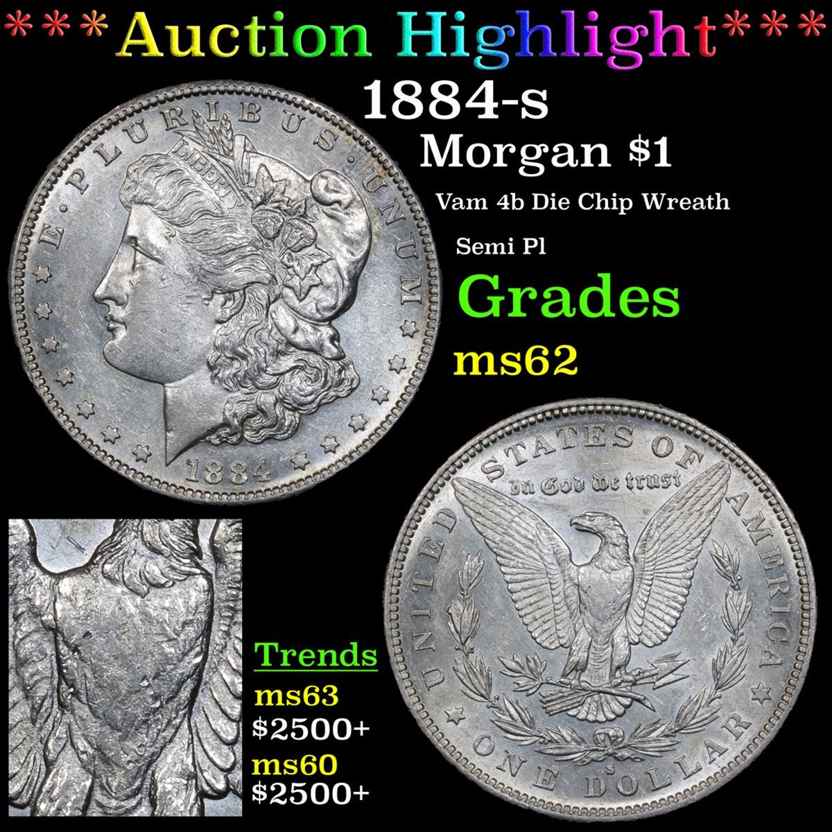 ***Auction Highlight*** 1884-s Key Date . Morgan Dollar $1 Grades Select Unc.