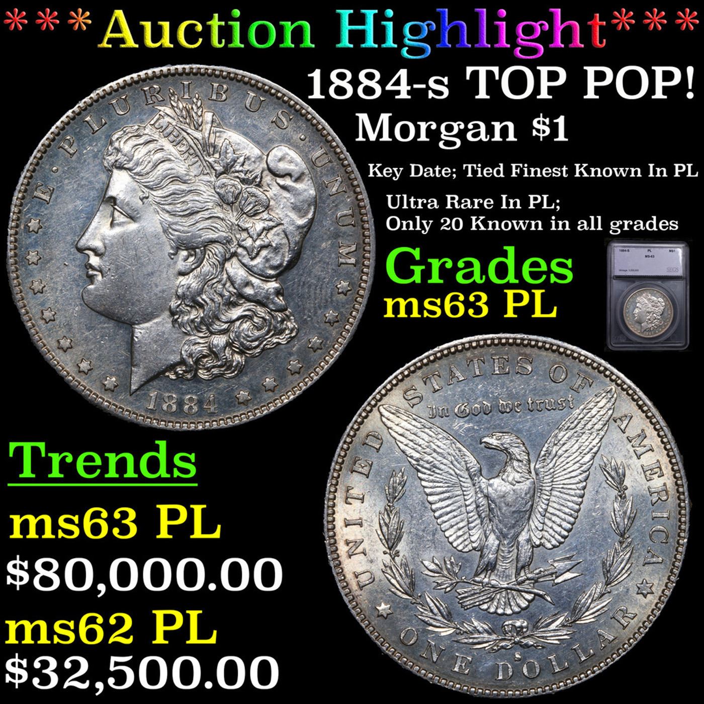 ***Auction Highlight*** 1884-s TOP POP! Morgan Dollar $1 Graded ms63 PL BY SEGS. A Corey's Pick, Bid to Win, Don't let it get Away, you might not find its equal Coin. I give this coin my highest recommendation