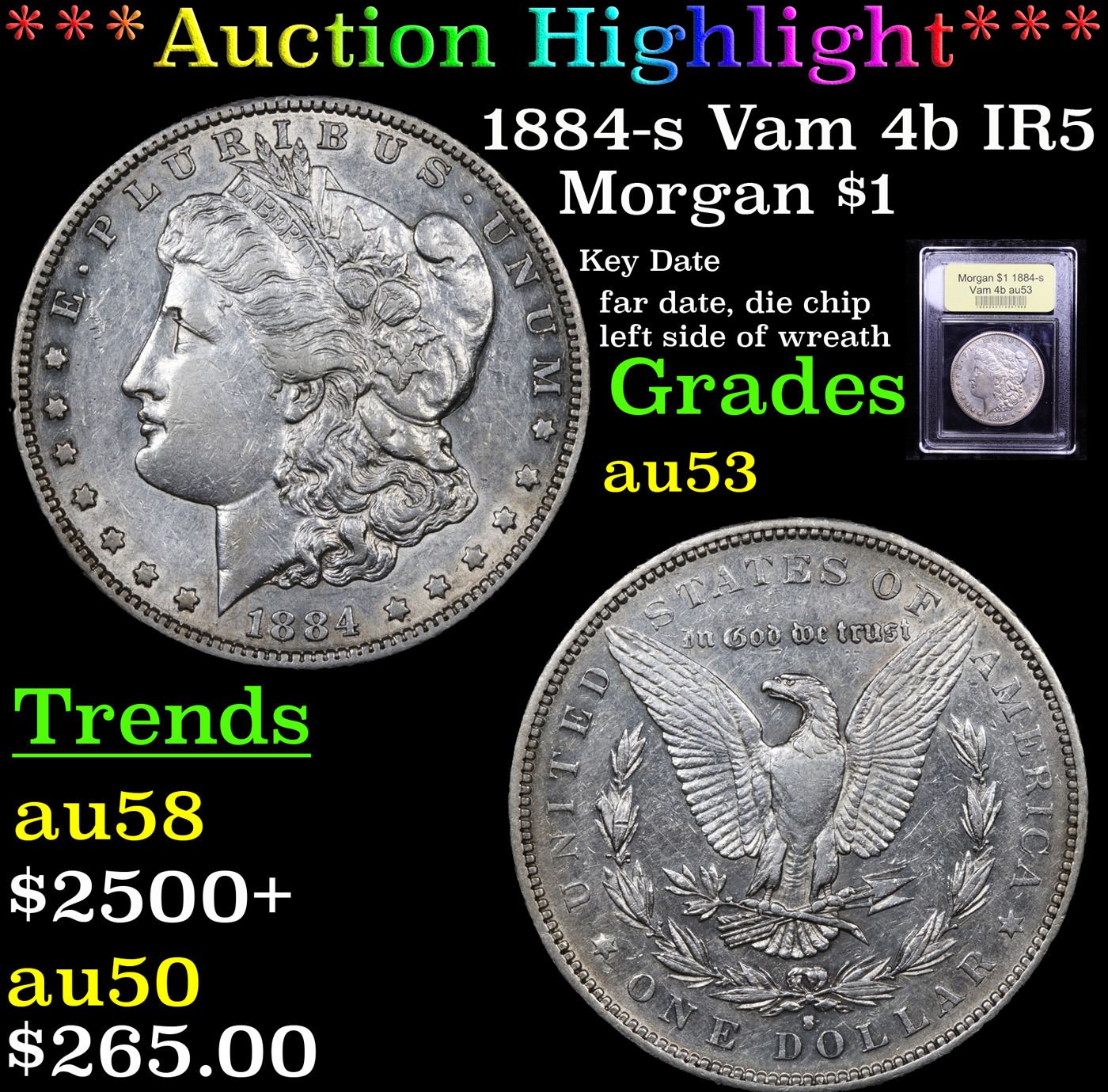 ***Auction Highlight*** 1884-s Vam 4b IR5 Morgan Dollar $1 Graded Select AU By USCG.