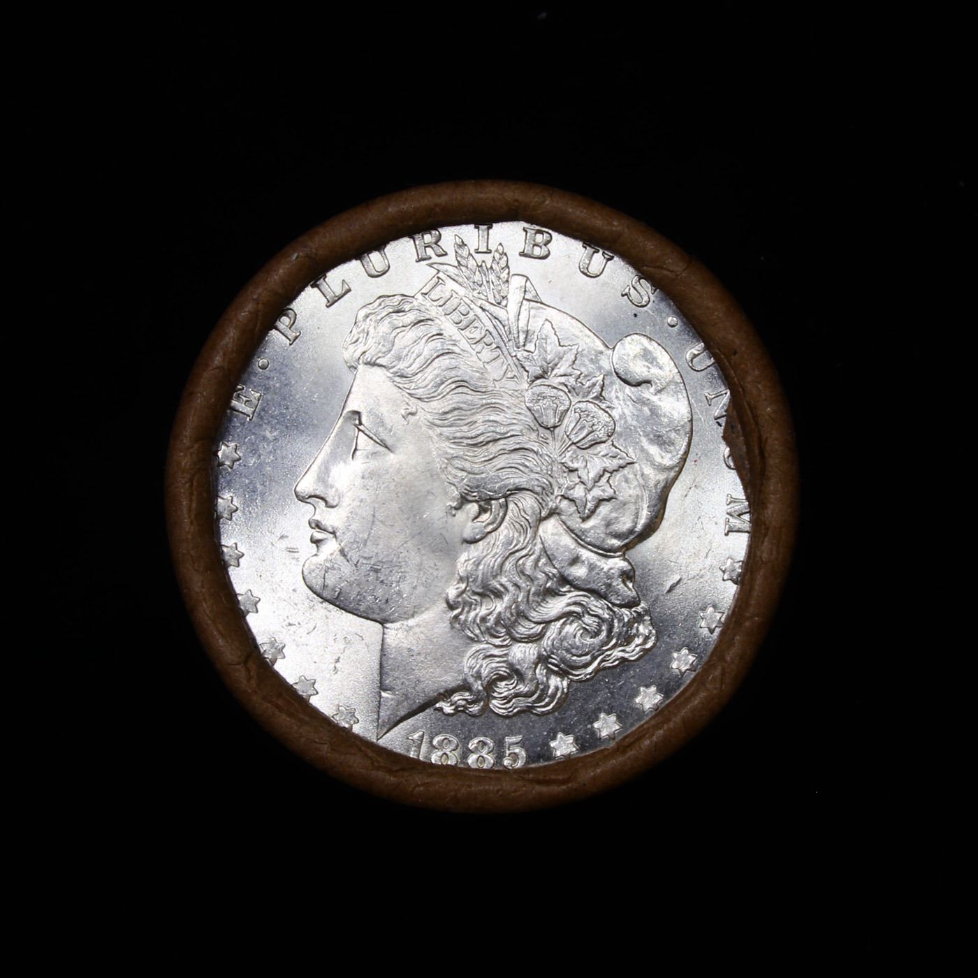 ***Auction Highlight*** 1885 & CC Uncirculated Morgan Dollar Shotgun Roll. Uncirculated Morgan Dollar Roll, Superb Ends, Carson City, Nevada Investment and Trust Co wrapper. Weighs Perfectly as a Uncirculated Roll.