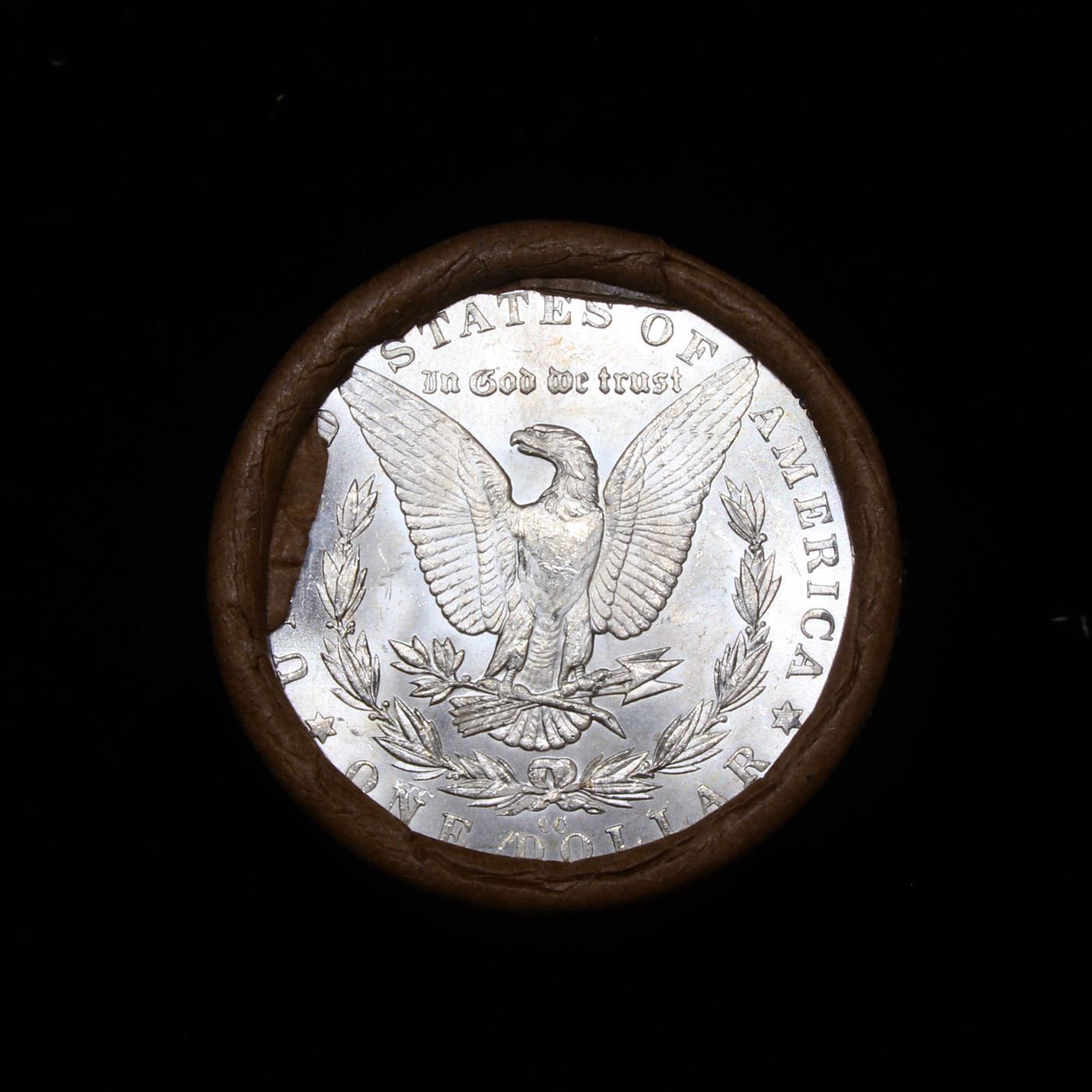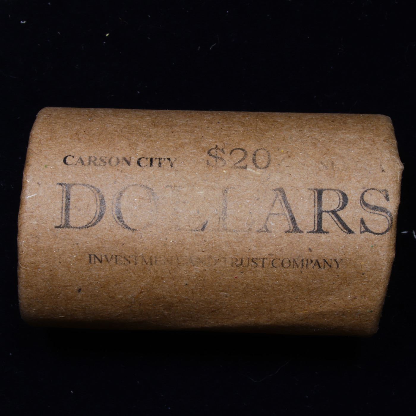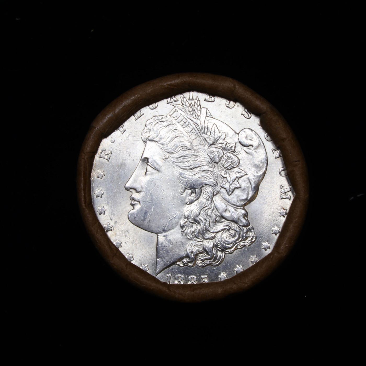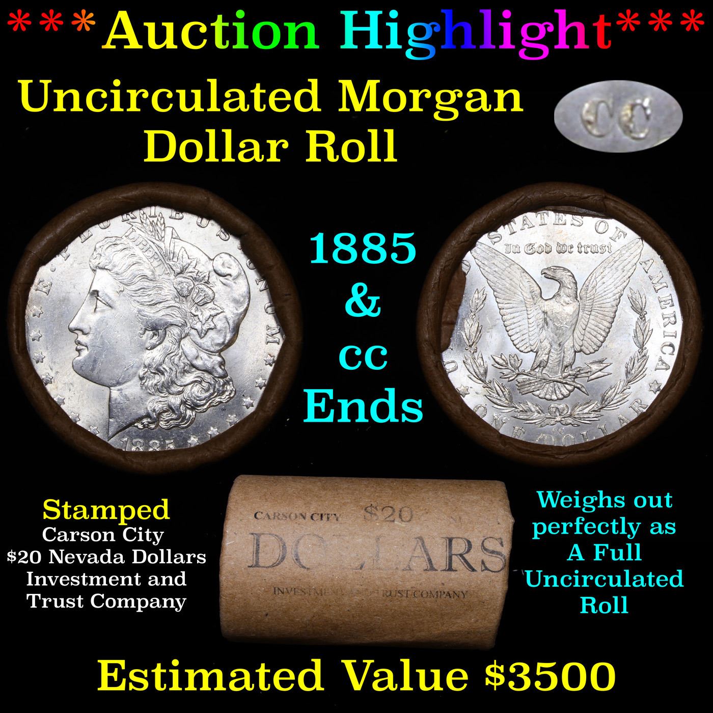 ***Auction Highlight*** 1885 & CC Uncirculated Morgan Dollar Shotgun Roll. Uncirculated Morgan Dollar Roll, Superb Ends, Carson City, Nevada Investment and Trust Co wrapper. Weighs Perfectly as a Uncirculated Roll.