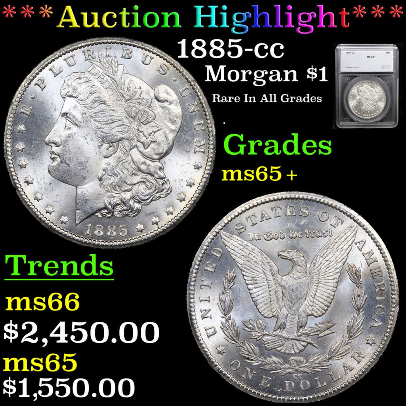***Auction Highlight*** 1885-cc Morgan Dollar 1 Graded MS65+ by SEGS.