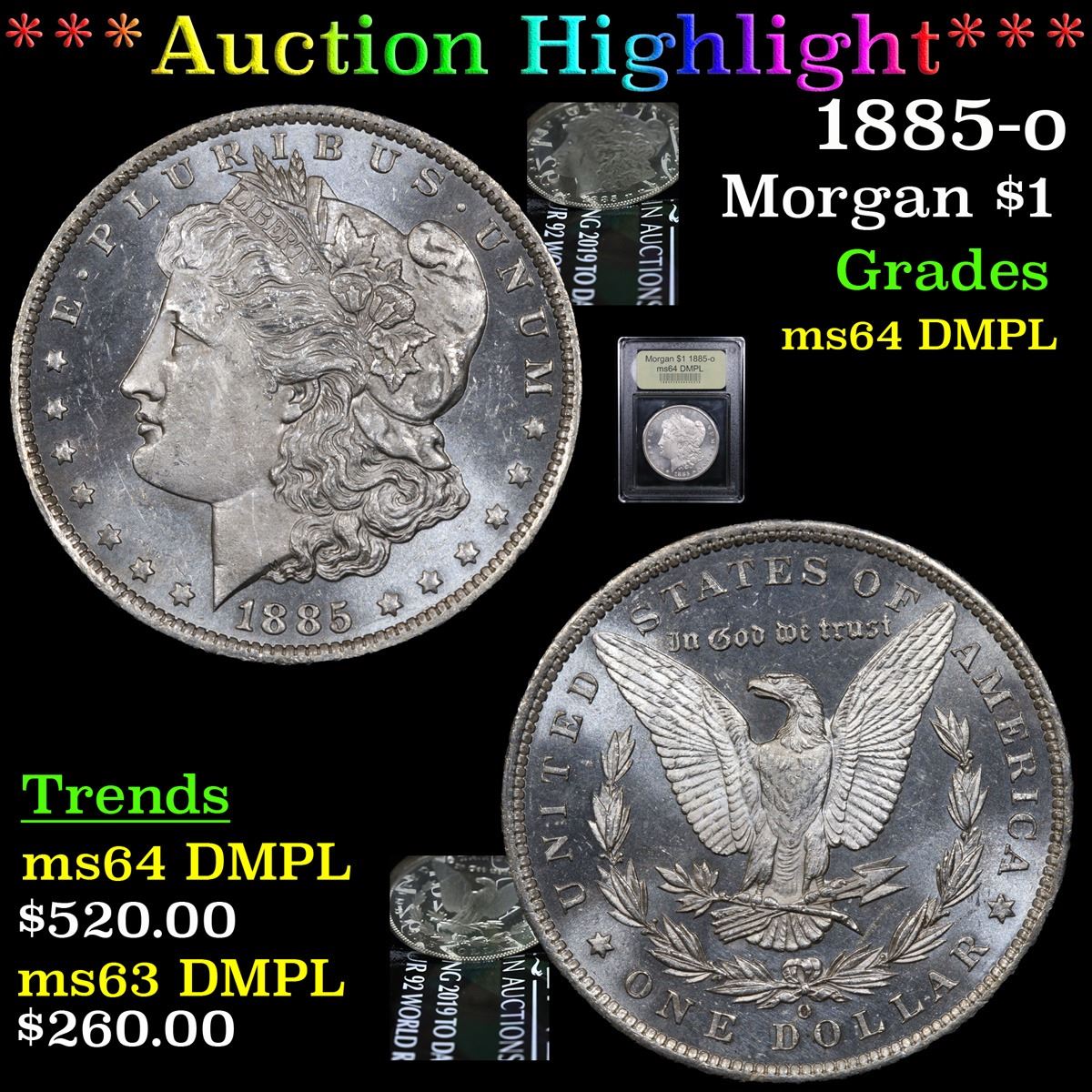 ***Auction Highlight*** 1885-o . . Morgan Dollar $1 Graded Choice Unc DMPL By USCG. A Corey's Pick, Bid to Win Coin