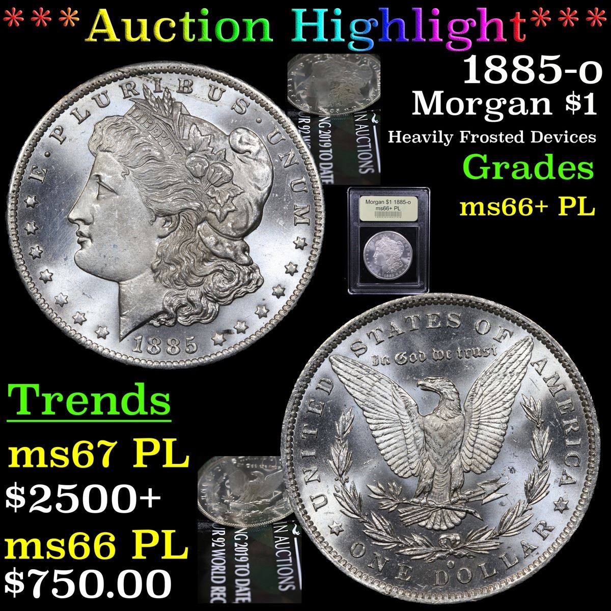 ***Auction Highlight*** 1885-o Heavily Frosted Devices . Morgan Dollar $1 Graded GEM++ PL By USCG. A Corey's Pick, Bid to Win, Don't let it get Away, you might not find its equal Coin. I give this coin my highest recommendation