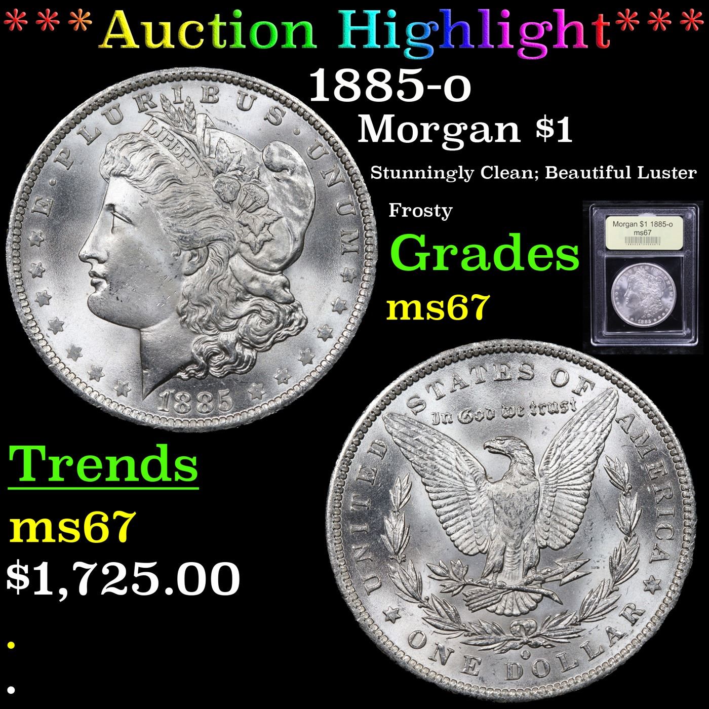 ***Auction Highlight*** 1885-o Morgan Dollar $1 Graded GEM++ Unc BY USCG.