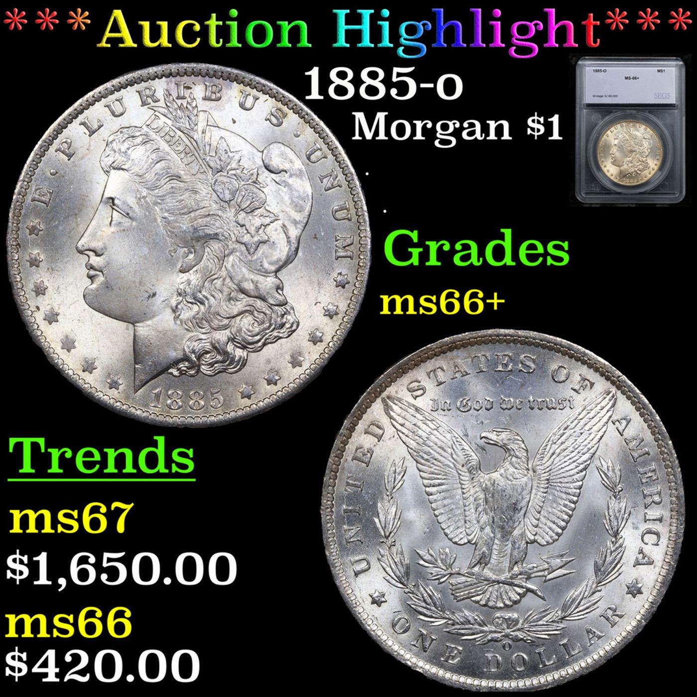 ***Auction Highlight*** 1885-o Morgan Dollar 1 Graded ms66+ By SEGS.