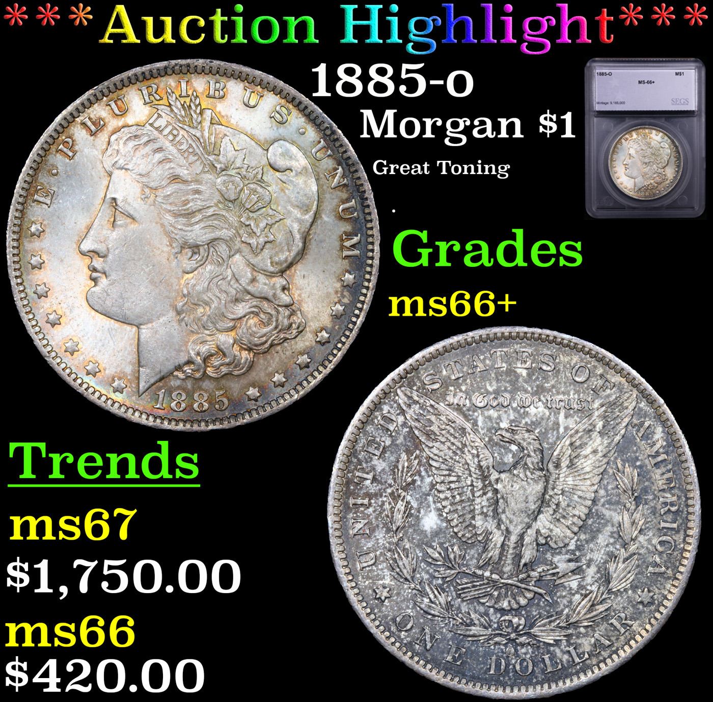 ***Auction Highlight*** 1885-o Morgan Dollar $1 Graded ms66+ By SEGS. A Key Date's Pick, Bid to Win Coin