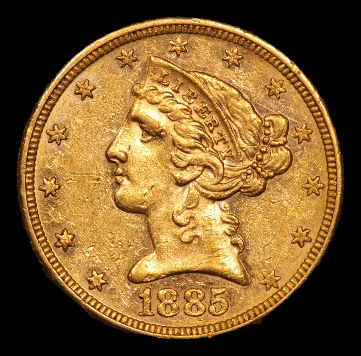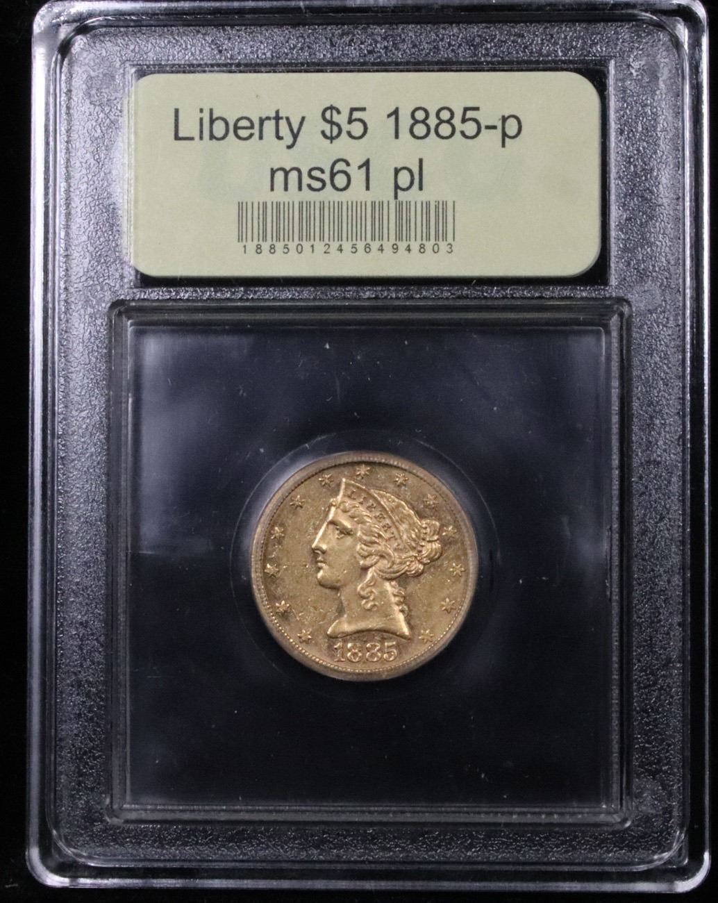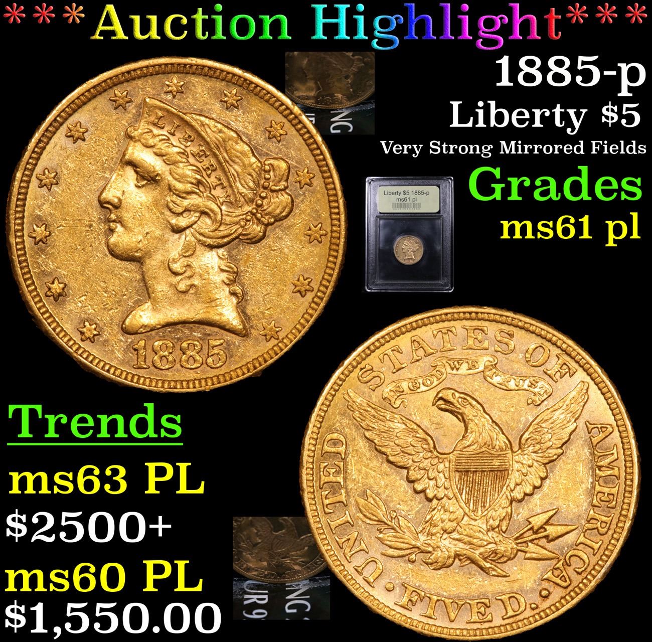 ***Auction Highlight*** 1885-p Very Strong Mirrored Fields . Gold Liberty Half Eagle $5 Graded Unc+ PL By USCG. A Corey's Pick, Bid to Win Coin