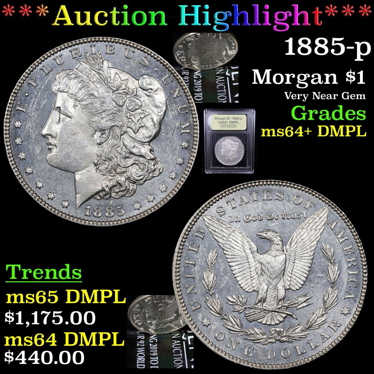 ***Auction Highlight*** 1885-p . Very Near Gem Morgan Dollar $1 Graded Choice Unc+ DMPL By USCG. A Corey's Pick, Bid to Win, Don't let it get Away Coin