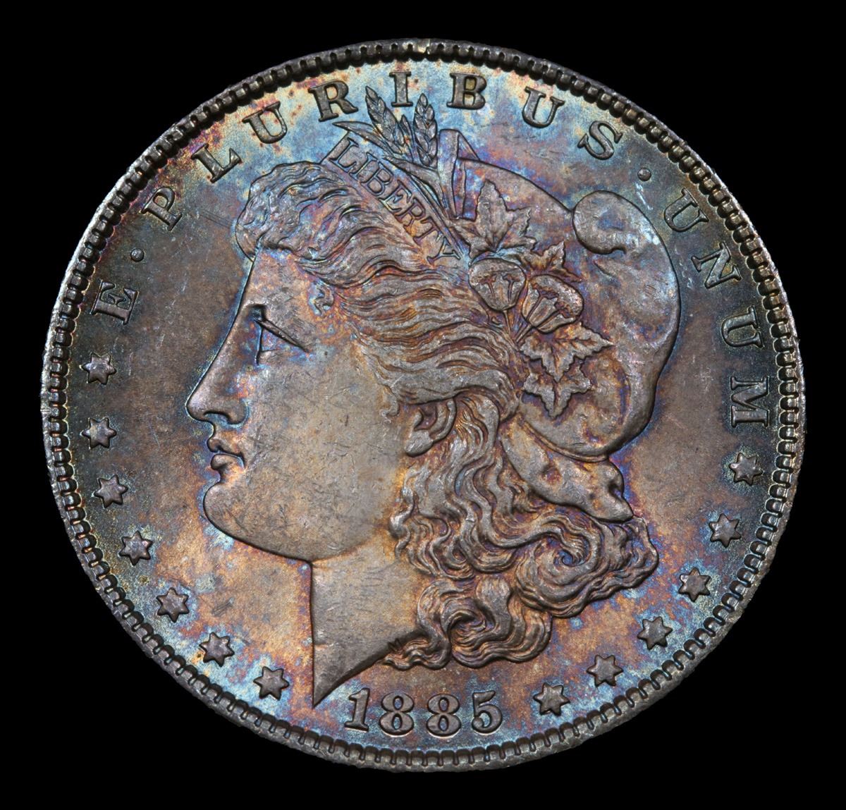 ***Auction Highlight*** 1885-p Rainbow Toned Morgan Dollar $1 Graded GEM+ Unc By USCG (fc)