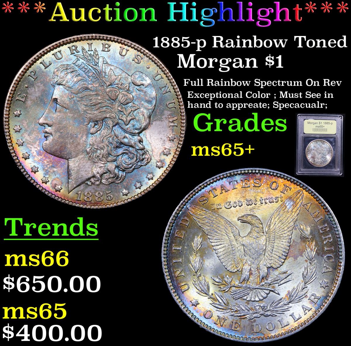 ***Auction Highlight*** 1885-p Rainbow Toned Morgan Dollar $1 Graded GEM+ Unc By USCG (fc)