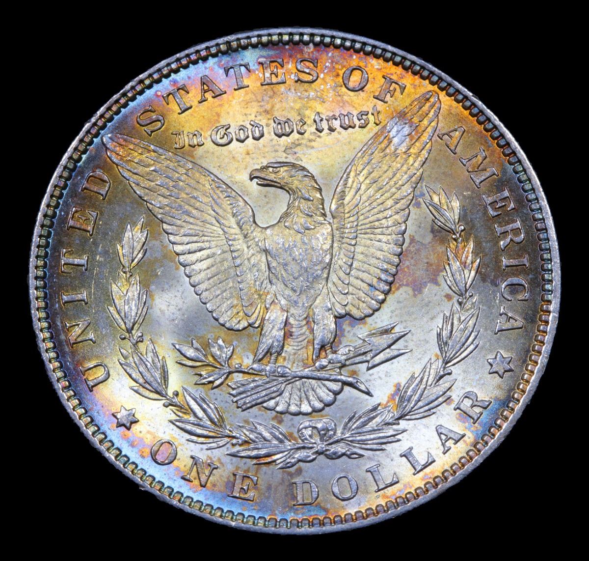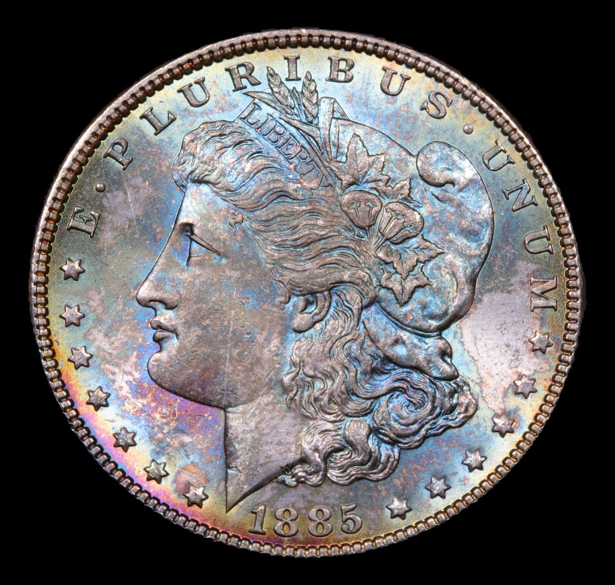 ***Auction Highlight*** 1885-p Rainbow Toned Morgan Dollar $1 Graded GEM+ Unc By USCG.
