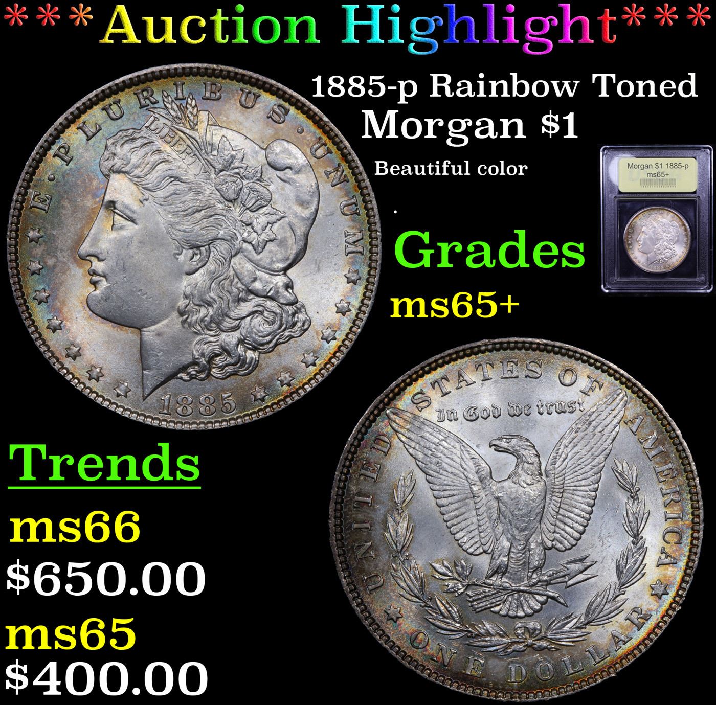 ***Auction Highlight*** 1885-p Rainbow Toned Morgan Dollar $1 Graded GEM+ Unc By USCG. A Corey's Pick, Bid to Win Coin